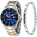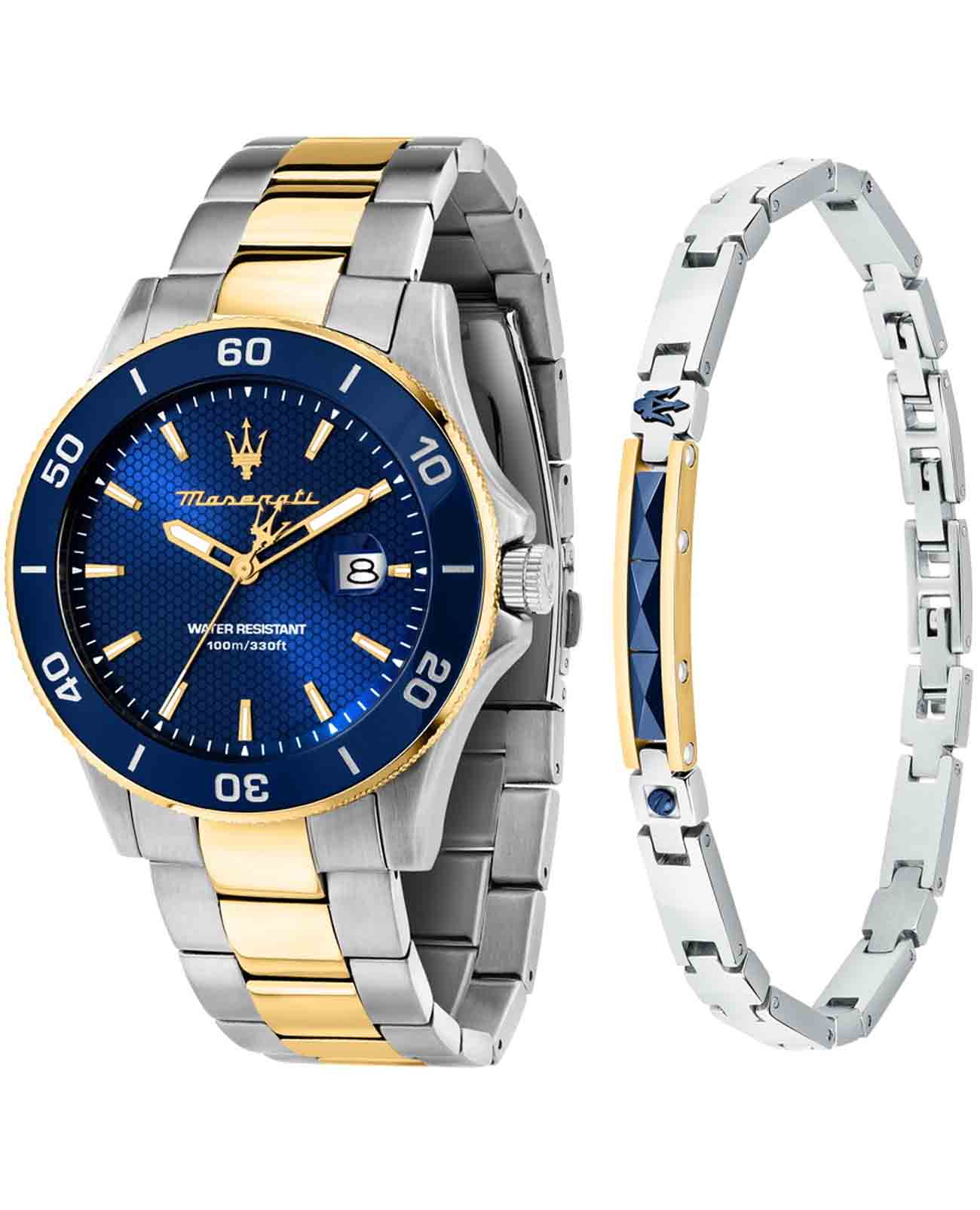 Мужские часы Maserati R8873600007 — это стильное сочетание элегантности и современного дизайна. Корпус из нержавеющей стали с диаметром 43 мм идеально сбалансирован и элегантен. Минеральное стеклоМинеральное стеклоМинеральное стекло представляет собой искусственно выращенный минерал кварца. Такое стекло отличается особой устойчивостью к повреждениям и царапинам. Уступает по некоторым качествам сапфировому стеклу. защищает циферблат от царапин. Стальной браслет на застёжке-бабочке с кнопкамиЗастёжка "бабочка"Такой вид застёжки дополняется предохранителями, помогающими избежать случайного раскрытия браслета. Обладают изящным исполнением. идеально дополняют дизайн часов, обеспечивая комфортное ношение. Стрелки и метки с люминесцентным покрытиемЛюминесцентное покрытиеПозволяет считывать показания времени в темноте. Производители наносят на стрелки, часовые индексы, безель или поверхность циферблата светонакопительный состав, дающий холодное свечение.. БезельБезельВнешний ободок, закрепляющий стекло. В спортивных часах так называется поворотное кольцо с делениями на циферблате, выполняет роль таймера – замеряет отрезки времени на шкале. Неподвижный безель – элемент декора. Однонаправленно вращающийся безель на дайверских часах позволяет фиксировать моменты погружения и выныривания на поверхность. с керамической вставкой. Часы обладают впечатляющей водонепроницаемостью до 10 бар (100 метров), что делает их идеальными для повседневной носки. Метки в виде штрихов. Окошко даты с увеличительным стеклом находится в положении 3 часа. Данная модель идёт в комплекте с мужским браслетом из гипоаллергенной нержавеющей стали и частичным PVD-покрытиемPVDУльтратонкое покрытие наносится в технике вакуумного напыления, сочетает в себе нитрид титана особой прочности со слоем золота или оксида хрома. Несёт в себе декоративную или защитную функцию..