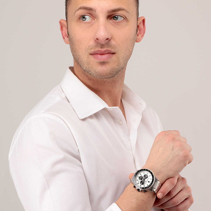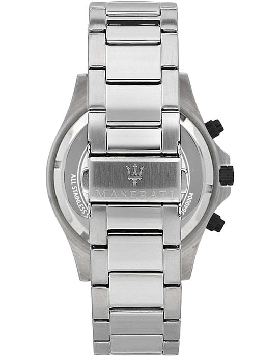 Мужские часы с хронографом Maserati SFIDA R8873640003, кварцевый механизм с высокой точностью. Класс водозащиты: 100 метров, позволит плавать, нырять и заниматься другими водными видами спорта. Корпус часов изготовлен из стали, серебристого цвета.
