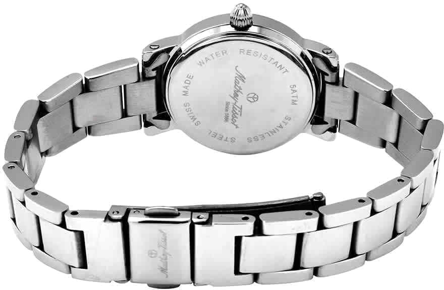 Женские кварцевые часы Mathey-Tissot City Metal D31186MABR — это стильное сочетание элегантности и современного дизайна. Изящный корпус выполнен из нержавеющей стали 316L серебристого цвета, что придаст образу женственности и романтизма. Изысканный циферблат с метками в виде римских цифр придает модели особый блеск. Циферблат защищен минеральным стекломМинеральное стеклоМинеральное стекло представляет собой искусственно выращенный минерал кварца. Такое стекло отличается особой устойчивостью к повреждениям и царапинам. Уступает по некоторым качествам сапфировому стеклу. с сапфировым покрытием, обеспечивающий устойчивость к царапинам. Окошко даты находится в положении 3 часа. Часы оснащены надежным кварцевым механизмом. Стальной браслет на раскладной застёжкеРаскладная застёжкаТакой тип застёжки используется только на браслетах из металла. Она никогда не раскрывается полностью, происходит разделение на 2 и более частей. Раскладывающая застёжка снизит вероятность потери часов к минимуму., гарантирует комфортное и безопасное ношение. Класс водозащиты: 30 метров позволит защитить корпус от случайных брызг или капель дождя. Mathey-Tissot — отличный выбор для тех, кто ценит утонченность и качество.