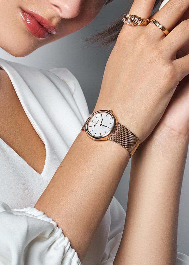 Женские кварцевые часы Mathey-Tissot Milly D403PI — это стильное сочетание элегантности и современного дизайна. Изящный корпус выполнен из нержавеющей стали с PVD-покрытиемPVDУльтратонкое покрытие наносится в технике вакуумного напыления, сочетает в себе нитрид титана особой прочности со слоем золота или оксида хрома. Несёт в себе декоративную или защитную функцию. цвета розового золота, диаметром 30 мм, что придаст образу элегантности и надежности. Изысканный перламутровый циферблат с метками в виде штрихов придает модели особый блеск. Циферблат защищен минеральным стекломМинеральное стеклоМинеральное стекло представляет собой искусственно выращенный минерал кварца. Такое стекло отличается особой устойчивостью к повреждениям и царапинам. Уступает по некоторым качествам сапфировому стеклу. с сапфировым покрытием, обеспечивает устойчивость к царапинам. Часы оснащены надежным кварцевым механизмом. Стальной браслет с PVD-покрытиемPVDУльтратонкое покрытие наносится в технике вакуумного напыления, сочетает в себе нитрид титана особой прочности со слоем золота или оксида хрома. Несёт в себе декоративную или защитную функцию. миланского плетения на раскладном замкеРаскладная застёжкаТакой тип застёжки используется только на браслетах из металла. Она никогда не раскрывается полностью, происходит разделение на 2 и более частей. Раскладывающая застёжка снизит вероятность потери часов к минимуму., гарантирует комфортное и безопасное ношение. Класс водозащиты: 30 метров позволит защитить корпус от случайных брызг или капель дождя. Mathey-Tissot — отличный выбор для тех, кто ценит утонченность и качество.