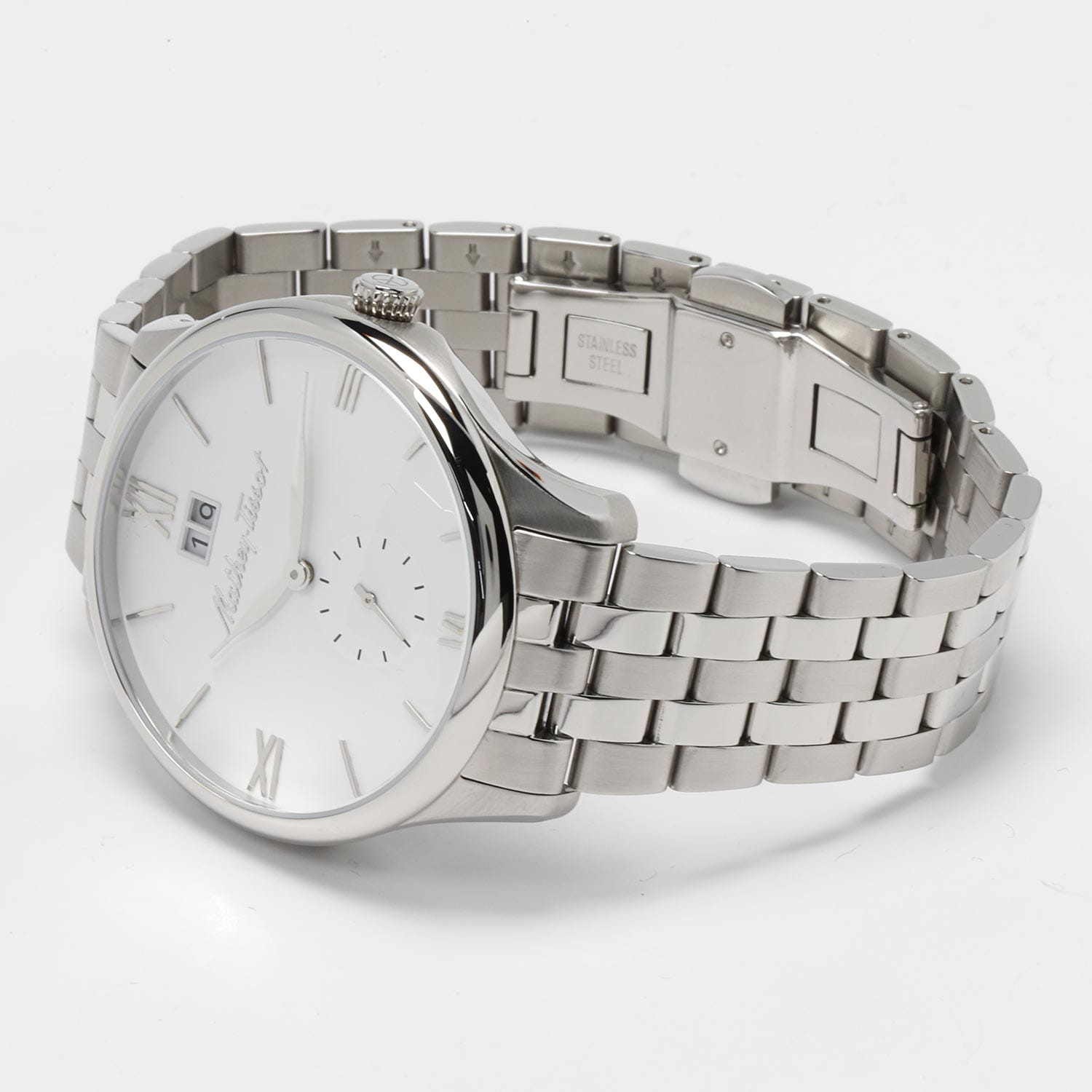 Мужские кварцевые часы Mathey-Tissot Edmond Metal H1886MAI — это стильное сочетание элегантности и современного дизайна. Изящный корпус выполнен из нержавеющей стали, диаметром 42 мм, что придаст образу элегантности и надежности. Изысканный циферблат с метками в виде штрихов и римских цифр придает модели особый блеск. Циферблат защищен минеральным стекломМинеральное стеклоМинеральное стекло представляет собой искусственно выращенный минерал кварца. Такое стекло отличается особой устойчивостью к повреждениям и царапинам. Уступает по некоторым качествам сапфировому стеклу. с сапфировым покрытием, обеспечивает устойчивость к царапинам. Окошко даты находится в положении 12 часов. Стальной браслет на застёжке-бабочке с кнопкамиЗастёжка "бабочка"Такой вид застёжки дополняется предохранителями, помогающими избежать случайного раскрытия браслета. Обладают изящным исполнением. , гарантирует комфортное и безопасное ношение. Секундная стрелка вынесена на отдельный циферблат. Рифленая заводная головка. Класс водозащиты: 50 метров позволит защитить корпус от случайных брызг или капель дождя. Mathey-Tissot — отличный выбор для тех, кто ценит утонченность и качество.