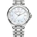Белый перламутровый циферблат украшен 8 бриллиантовыми метками, которые придают часам утончённый блеск. Серебристые стрелки подчёркивают элегантность дизайна, а окошко даты расположено на отметке «6 часов».