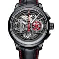 Мужские швейцарские механические часы c хронографом из ограниченной серии Maurice Lacroix Masterpiece MP6028-PVB01-001-1, механический механизм (автоматический калибр) с высокой точностью. Сапфировое стекло устойчивое к появлению царапин, обладающее высокой прозрачностью. Класс водозащиты: 100 метров, позволит плавать, нырять и заниматься другими водными видами спорта. Корпус часов изготовлен из стали, черного цвета.