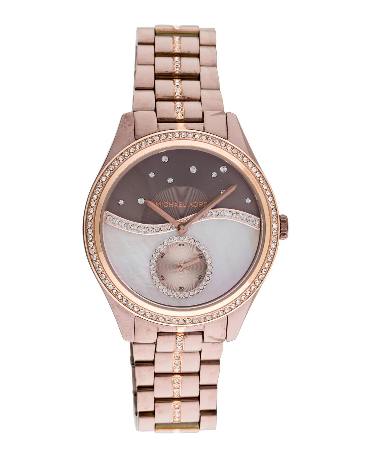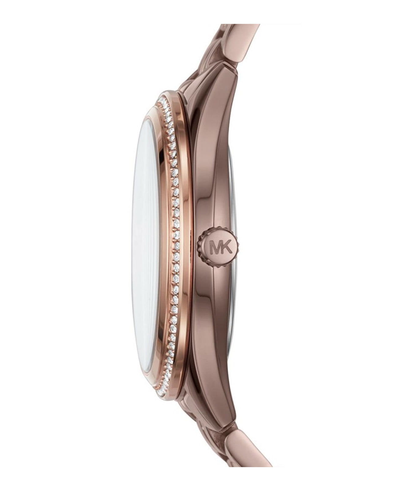 Женские американские часы Michael Kors Lauryn MK3757, кварцевый механизм с высокой точностью. Минеральное стеклоМинеральное стеклоМинеральное стекло представляет собой искусственно выращенный минерал кварца. Такое стекло отличается особой устойчивостью к повреждениям и царапинам. Уступает по некоторым качествам сапфировому стеклу., устойчивое к мелким механическим повреждениям. Корпус часов выполнен из нержавеющей стали с PVD-покрытиемPVDУльтратонкое покрытие наносится в технике вакуумного напыления, сочетает в себе нитрид титана особой прочности со слоем золота или оксида хрома. Несёт в себе декоративную или защитную функцию.. Циферблат украшен кристаллами. Класс водозащиты: 50 метров, позволит защитить корпус от случайных брызг или капель дождя. Стальной браслет с PVD-покрытиемPVDУльтратонкое покрытие наносится в технике вакуумного напыления, сочетает в себе нитрид титана особой прочности со слоем золота или оксида хрома. Несёт в себе декоративную или защитную функцию. частично украшен кристаллами на раскладной застёжкеРаскладная застёжкаТакой тип застёжки используется только на браслетах из металла. Она никогда не раскрывается полностью, происходит разделение на 2 и более частей. Раскладывающая застёжка снизит вероятность потери часов к минимуму..