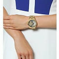 Женские американские часы с минеральным стекломМинеральное стеклоМинеральное стекло представляет собой искусственно выращенный минерал кварца. Такое стекло отличается особой устойчивостью к повреждениям и царапинам. Уступает по некоторым качествам сапфировому стеклу. Michael Kors Bradshaw MK6243, кварцевый механизм с высокой точностью. Корпус часов изготовлен из стали с PVD-покрытиемPVDУльтратонкое покрытие наносится в технике вакуумного напыления, сочетает в себе нитрид титана особой прочности со слоем золота или оксида хрома. Несёт в себе декоративную или защитную функцию.. Циферблат украшен рисунком в виде карты мира выложенным стразами. Окошко даты находится в положении 6 часов. Класс водозащиты: 100 метров, позволит плавать, нырять и заниматься другими водными видами спорта. Стальной браслет с PVD-покрытиемPVDУльтратонкое покрытие наносится в технике вакуумного напыления, сочетает в себе нитрид титана особой прочности со слоем золота или оксида хрома. Несёт в себе декоративную или защитную функцию. на раскладной застёжкеРаскладная застёжкаТакой тип застёжки используется только на браслетах из металла. Она никогда не раскрывается полностью, происходит разделение на 2 и более частей. Раскладывающая застёжка снизит вероятность потери часов к минимуму..