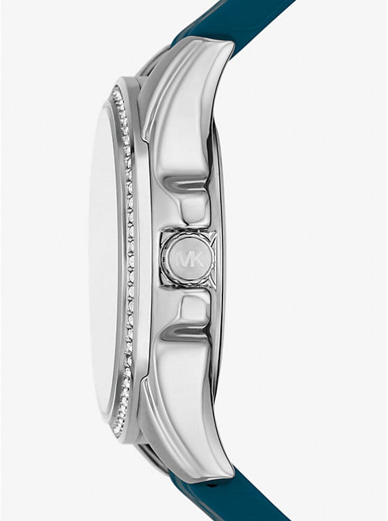 Идеальный аксессуар, который придаст женскому образу завершенность и особый шарм. Женские американские часы Michael Kors Pilot MKO1004 имеют кварцевый механизм с высокой точностью. Корпус часов изготовлен из нержавеющей стали, диаметром 36 мм. Циферблат с метками в виде штрихов и арабских цифр защищен минеральным стекломМинеральное стеклоМинеральное стекло представляет собой искусственно выращенный минерал кварца. Такое стекло отличается особой устойчивостью к повреждениям и царапинам. Уступает по некоторым качествам сапфировому стеклу., что обеспечивает надежную защиту от царапин и повреждений. БезельБезельВнешний ободок, закрепляющий стекло. В спортивных часах так называется поворотное кольцо с делениями на циферблате, выполняет роль таймера – замеряет отрезки времени на шкале. Неподвижный безель – элемент декора. Однонаправленно вращающийся безель на дайверских часах позволяет фиксировать моменты погружения и выныривания на поверхность. украшен кристаллами. Стрелки с люминесцентным покрытиемЛюминесцентное покрытиеПозволяет считывать показания времени в темноте. Производители наносят на стрелки, часовые индексы, безель или поверхность циферблата светонакопительный состав, дающий холодное свечение.. Класс водозащиты: 30 метров позволит защитить корпус от случайных брызг или капель дождя. Удобный силиконовый ремешок с классической застежкой обеспечивает надежную фиксацию на запястье и легкость в надевании и снятии. 24-часовой формат времени для удобства планирования. Эти часы станут отличным дополнением к любому наряду, подчеркивая индивидуальность и стиль их обладательницы.