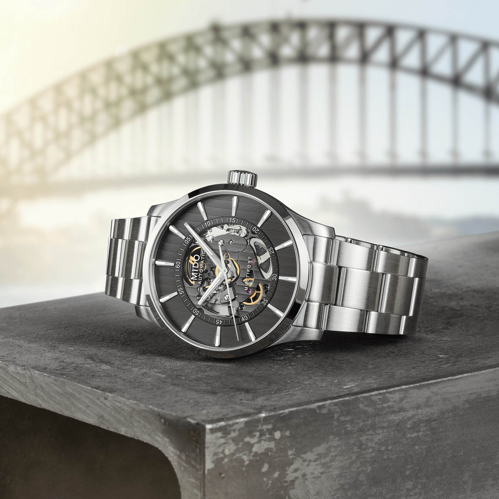 Швейцарские мужские механические часы Mido Multifort Skeleton Vertigo M038.436.11.061.00