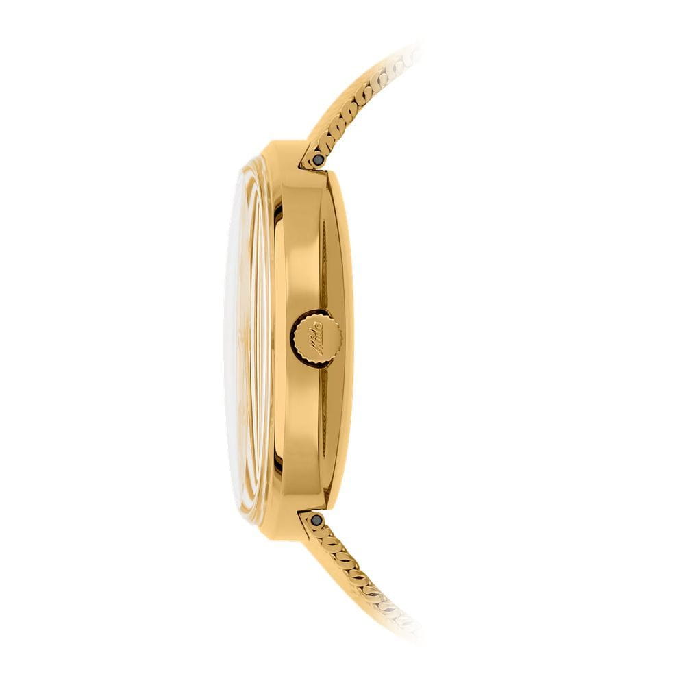 Циферблат с фирменным логотипом Mido 1950-х годов украшен накладными индексами и стрелками с люминесцентным покрытиемЛюминесцентное покрытиеПозволяет считывать показания времени в темноте. Производители наносят на стрелки, часовые индексы, безель или поверхность циферблата светонакопительный состав, дающий холодное свечение., обеспечивающим читаемость даже в условиях слабого освещения. На «3 часах» расположено двойное окошко календаря — день недели и дата. Стальной браслет миланского плетения с PVD-покрытиемPVDУльтратонкое покрытие наносится в технике вакуумного напыления, сочетает в себе нитрид титана особой прочности со слоем золота или оксида хрома. Несёт в себе декоративную или защитную функцию. на раскладном замкеРаскладной замокДанный вариант застежки используется только на часах с металлическим браслетом. Отличительная особенность такого крепления в том, что длина браслета становится универсальной и вы можете самостоятельно отрегулировать нужный вам размер – застежка просто двигается по браслету часов..Модель защищена акриловым стеклом, сохраняющим аутентичный винтажный характер. Прозрачная задняя крышка открывает вид на автоматический механизм с автоподзаводом и 80-часовым запасом хода.