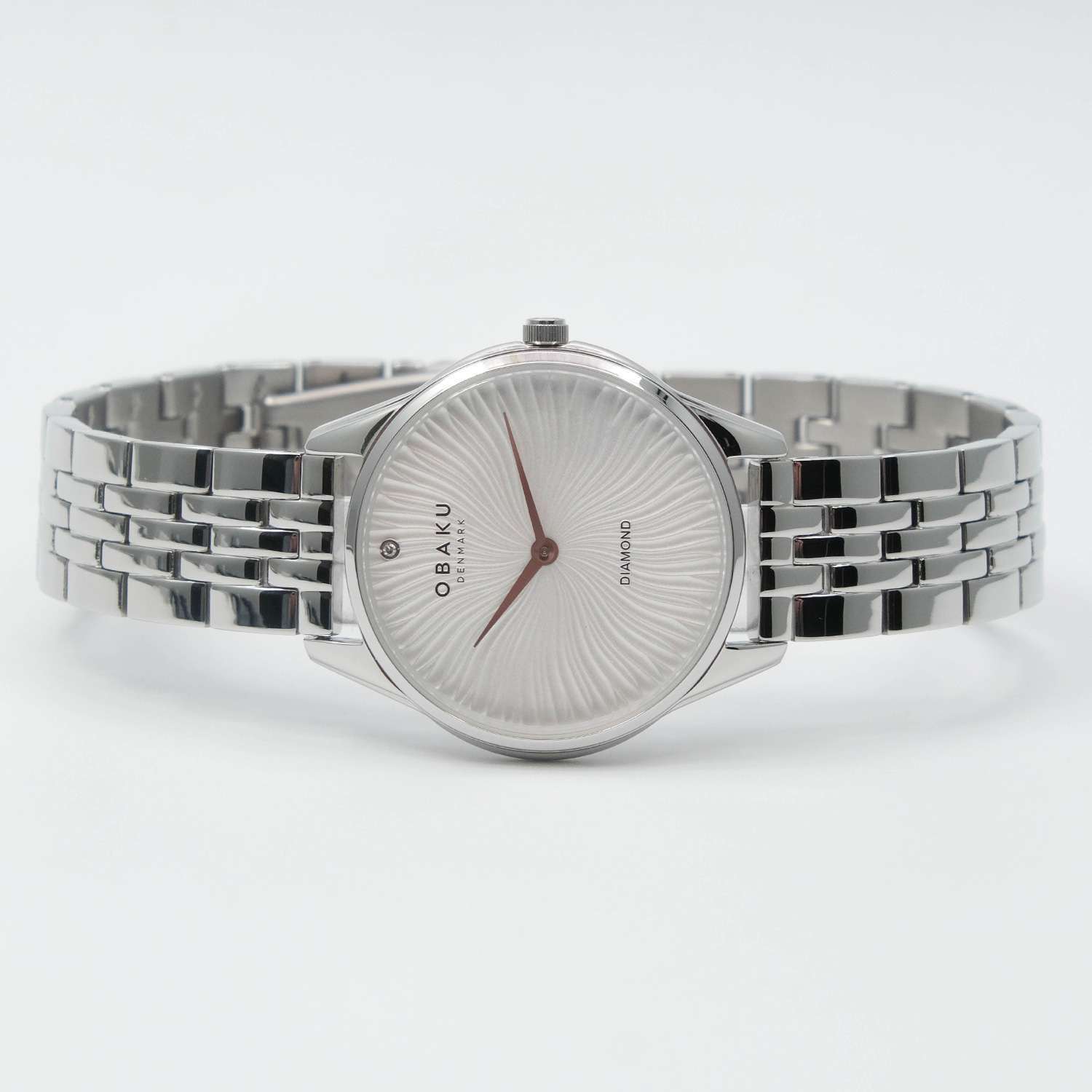 Женские наручные часы Obaku Diamond V297LXCISC кварцевый механизм с высокой точностью, настоящее воплощение элегантности и утонченности. Их дизайн завораживает с первого взгляда, сочетая в себе классическую лаконичность и современные акценты. Минеральное стеклоМинеральное стеклоМинеральное стекло представляет собой искусственно выращенный минерал кварца. Такое стекло отличается особой устойчивостью к повреждениям и царапинам. Уступает по некоторым качествам сапфировому стеклу. защищает циферблат от царапин, устойчивое к мелким механическим повреждениям. Корпус выполнен из нержавеющей стали серебристого цвета, диаметром 32 мм идеально сбалансирован и элегантен. Класс водозащиты: 30 метров позволит защитить корпус от случайных брызг или капель дождя. Стальной браслет на раскладной застежкеРаскладной замокДанный вариант застежки используется только на часах с металлическим браслетом. Отличительная особенность такого крепления в том, что длина браслета становится универсальной и вы можете самостоятельно отрегулировать нужный вам размер – застежка просто двигается по браслету часов. обеспечивает комфортное ношение. Часы украшены бриллиантом на 12 часов. Центральные часовая и минутная стрелки. Obaku Diamond – это не просто аксессуар, это заявление о вашем безупречном вкусе и стремлении к совершенству.