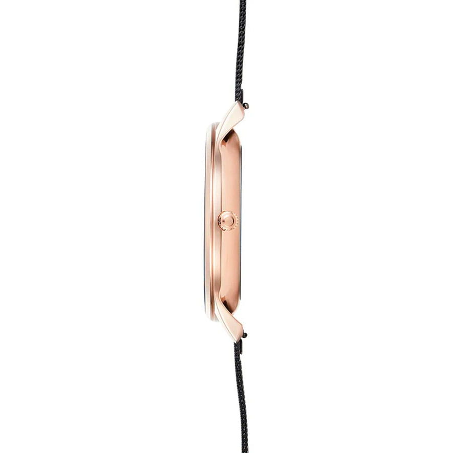 Женские наручные часы Obaku Chia Lille V298GDVBMB, кварцевый механизм с высокой точностью. Минеральное стеклоМинеральное стеклоМинеральное стекло представляет собой искусственно выращенный минерал кварца. Такое стекло отличается особой устойчивостью к повреждениям и царапинам. Уступает по некоторым качествам сапфировому стеклу. устойчивое к мелким механическим повреждениям. Корпус и браслет часов изготовлены из нержавеющей стали с IP-покрытиемIP-покрытиеМетод ионного напыления. Демонстрирует повышенную устойчивость к истиранию, окислению и химическим веществам. Под воздействием высокого давления и температуры около 1500°C молекулы металла надёжно соединяются с частицами корпуса часов.. Окошко даты находится в положении 3 часа. Класс водозащиты: 30 метров, позволит защитить корпус от случайных брызг или капель дождя. Стальной браслет миланского плетения на раскладном замкеРаскладной замокДанный вариант застежки используется только на часах с металлическим браслетом. Отличительная особенность такого крепления в том, что длина браслета становится универсальной и вы можете самостоятельно отрегулировать нужный вам размер – застежка просто двигается по браслету часов. с IP-покрытиемIP-покрытиеМетод ионного напыления. Демонстрирует повышенную устойчивость к истиранию, окислению и химическим веществам. Под воздействием высокого давления и температуры около 1500°C молекулы металла надёжно соединяются с частицами корпуса часов..