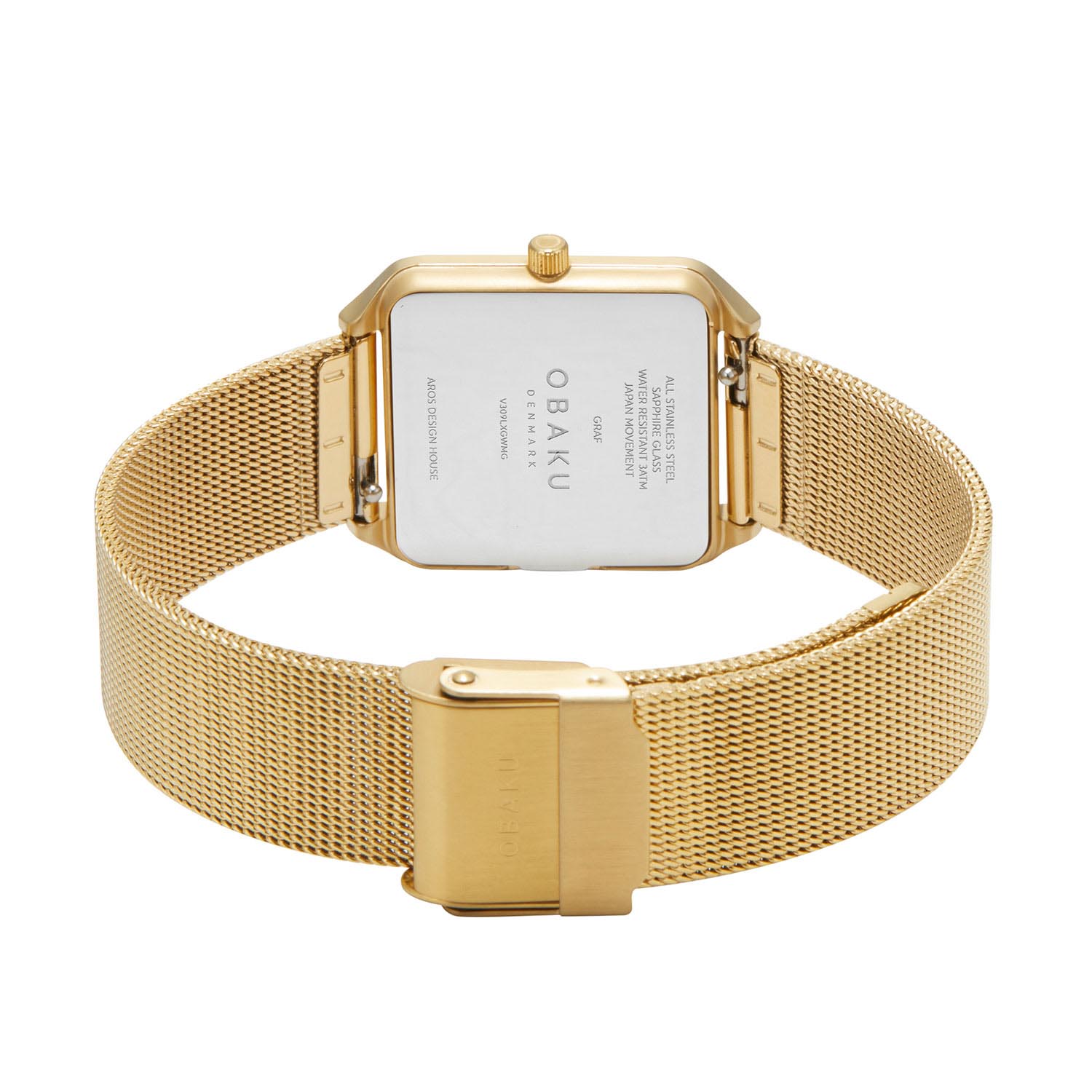 Женские кварцевые часы Obaku V309LXGWMG выполнены в минималистичном и элегантном стиле. Корпус квадратной формы из нержавеющей стали с IP-покрытиемIP-покрытиеМетод ионного напыления. Демонстрирует повышенную устойчивость к истиранию, окислению и химическим веществам. Под воздействием высокого давления и температуры около 1500°C молекулы металла надёжно соединяются с частицами корпуса часов. цвета желтого золота имеет габариты 26 х 31 мм и толщину всего 4.8 мм, что делает их лёгкими и удобными на руке. Циферблат белого цвета оснащён центральными часовой и минутной стрелками, дизайн которых подчёркивает чистоту линий и отсутствие лишних деталей. Защиту циферблата обеспечивает сапфировое стеклоСапфировое стеклоПрочный и надёжный материал из кристалла сапфира синтетического происхождения, характеризующийся особой твёрдостью и устойчивостью к царапинам и повреждениям., устойчивое к появлению царапин. Браслет выполнен по технологии из стали с покрытием и оснащён раскладной застёжкойРаскладная застёжкаТакой тип застёжки используется только на браслетах из металла. Она никогда не раскрывается полностью, происходит разделение на 2 и более частей. Раскладывающая застёжка снизит вероятность потери часов к минимуму. для надёжной фиксации на запястье. Водозащита позволяет использовать часы в повседневных условиях без риска повреждения от случайных брызг воды. Это сочетание лаконичного дизайна, прочности материалов и точности механизма для тех, кто ценит стиль и комфорт в каждой детали.