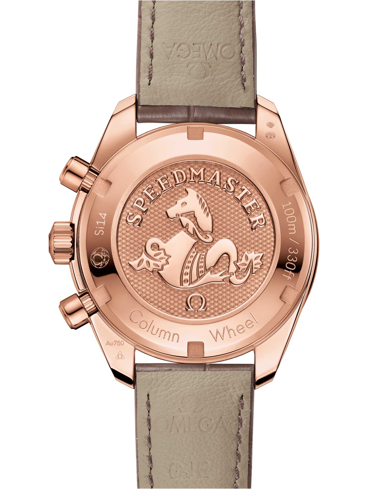 Коллекция Speedmaster 38 мм бережно сохраняет особенности легендарного хронографа OMEGA, представляя его в изысканной интерпретации с благородной палитрой. Корпус из 18-каратного золота Sedna™18-каратное золотоОбозначение по каратной системе пробирования, оно показывает, сколько драгоценного металла содержится в изделии. 18 карат - в составе 75% чистого золота, соответствует 750 пробе.