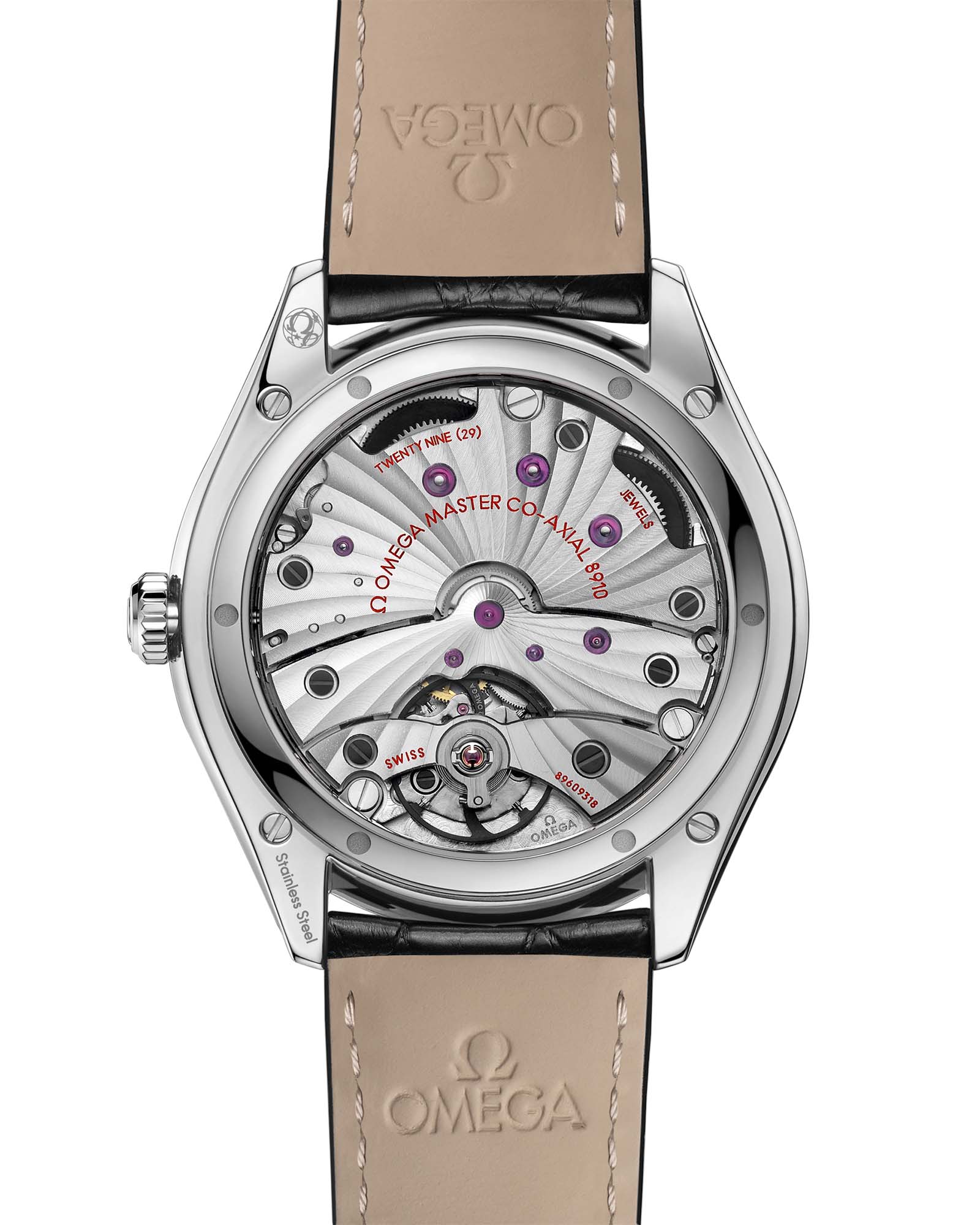 , а окошко даты на "6 часах" добавляет практичности. Внутри бьется сердце часового искусства XXI века — калибр OMEGA Co-Axial Master Chronometer 8910, сочетающий в себе швейцарскую точность с инновационной антимагнитной защитой.