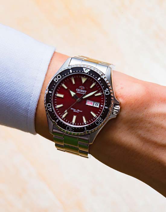 Мужские изысканные механические часы с автоподзаводом Orient Mako 3 RA-AA0003R1. Корпус и браслет часов изготовлены из нержавеющей стали. Сапфировое стеклоСапфировое стеклоПрочный и надёжный материал из кристалла сапфира синтетического происхождения, характеризующийся особой твёрдостью и устойчивостью к царапинам и повреждениям. высокой прозрачности с антибликовым покрытием. БезельБезельВнешний ободок, закрепляющий стекло. В спортивных часах так называется поворотное кольцо с делениями на циферблате, выполняет роль таймера – замеряет отрезки времени на шкале. Неподвижный безель – элемент декора. Однонаправленно вращающийся безель на дайверских часах позволяет фиксировать моменты погружения и выныривания на поверхность. с PVD-покрытиемPVDУльтратонкое покрытие наносится в технике вакуумного напыления, сочетает в себе нитрид титана особой прочности со слоем золота или оксида хрома. Несёт в себе декоративную или защитную функцию. черного цвета. Лаконичные стрелки и метки с люминесцентным покрытиемЛюминесцентное покрытиеПозволяет считывать показания времени в темноте. Производители наносят на стрелки, часовые индексы, безель или поверхность циферблата светонакопительный состав, дающий холодное свечение.. Класс водозащиты: 200 метров, позволит плавать, нырять и заниматься другими водными видами спорта. Стальной браслет с раскладной застёжкойРаскладная застёжкаТакой тип застёжки используется только на браслетах из металла. Она никогда не раскрывается полностью, происходит разделение на 2 и более частей. Раскладывающая застёжка снизит вероятность потери часов к минимуму. обеспечивает комфорт и удобство в использовании, добавляя завершающий штрих к этому стильному и высокоэффективному аксессуару. Окошко даты находится в положении 3 часов. Это практичный и стильный инструмент для активной повседневности, объединяющий точный механизм и удобство.