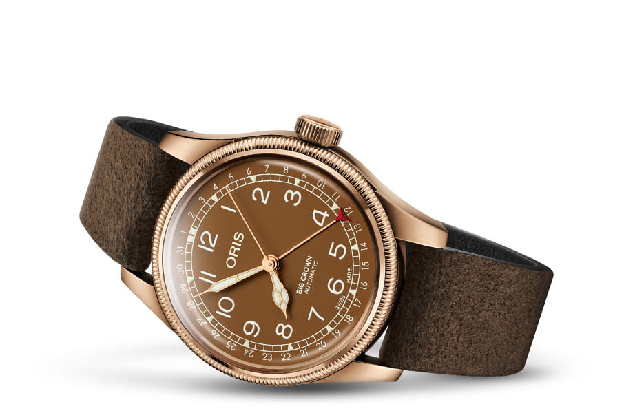 Бронзовые часы Oris Big Crown Pointer Date, показывающие время и дату, - это нечто большее, чем кажется. Впервые представленные в 1938, принципы их дизайна сохраняются и сегодня. Несмотря на то, что часы претерпели материальные и механические усовершенствования, их вечный новаторский дух сохраняется.