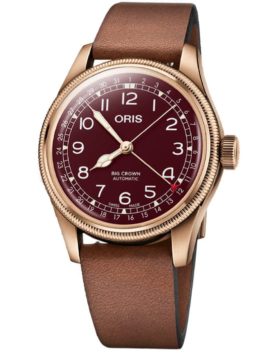 Модель Big Crown Pointer Date, ставшая иконой Oris в 1938 году, теперь имеет циферблат цвета бордо. Этот нестареющий дизайн включает в себя огромную крупную головку и красную стрелку даты с полумесяцем. Фирменный образец швейцарского часового искусства.