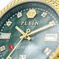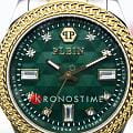 ​​Часы Philipp Plein PWCDA0524 из коллекции Queen сочетают элегантность и функциональность.​​ ​​Корпус диаметром 38 мм выполнен из нержавеющей стали, придающим изделию роскошный вид.​​ ​​Зеленый циферблат украшен фирменным логотипом бренда в виде черепа на отметке 12 часов.​​ ​​ БезельБезельВнешний ободок, закрепляющий стекло. В спортивных часах так называется поворотное кольцо с делениями на циферблате, выполняет роль таймера – замеряет отрезки времени на шкале. Неподвижный безель – элемент декора. Однонаправленно вращающийся безель на дайверских часах позволяет фиксировать моменты погружения и выныривания на поверхность. с IP-покрытиемIP-покрытиеМетод ионного напыления. Демонстрирует повышенную устойчивость к истиранию, окислению и химическим веществам. Под воздействием высокого давления и температуры около 1500°C молекулы металла надёжно соединяются с частицами корпуса часов..