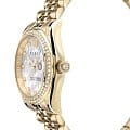 Яркие женские часы Philipp Plein Date Superlative PWYAA0323 с минеральным стекломМинеральное стеклоМинеральное стекло представляет собой искусственно выращенный минерал кварца. Такое стекло отличается особой устойчивостью к повреждениям и царапинам. Уступает по некоторым качествам сапфировому стеклу.. Особенные часы для особенных женщин! Ослепительный аксессуар, демонстрирующий роскошь и изысканность.Часы с круглым стальным корпусом с IP-покрытиемIP-покрытиеМетод ионного напыления. Демонстрирует повышенную устойчивость к истиранию, окислению и химическим веществам. Под воздействием высокого давления и температуры около 1500°C молекулы металла надёжно соединяются с частицами корпуса часов.. Перламутровый циферблат с метками в виде точек, украшенных кристаллами. Люминесцентное покрытиеЛюминесцентное покрытиеПозволяет считывать показания времени в темноте. Производители наносят на стрелки, часовые индексы, безель или поверхность циферблата светонакопительный состав, дающий холодное свечение. стрелок. Окошко даты с увеличительным стеклом находится в положении 3 часа. Рифленая заводная головка. Стальной браслет на застёжке бабочка с кнопкамиЗастёжка "бабочка"Такой вид застёжки дополняется предохранителями, помогающими избежать случайного раскрытия браслета. Обладают изящным исполнением.