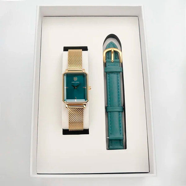 Женские кварцевые часы Pierre Lannier — это элегантный аксессуар с французским дизайном. Корпус прямоугольной формы размером 21 мм и толщиной 7,8 мм выполнен из нержавеющей стали с IP-покрытиемIP-покрытиеМетод ионного напыления. Демонстрирует повышенную устойчивость к истиранию, окислению и химическим веществам. Под воздействием высокого давления и температуры около 1500°C молекулы металла надёжно соединяются с частицами корпуса часов. цвета жёлтого золота. Циферблат зелёного цвета оформлен стрелками. Циферблат защищён минеральным стекломМинеральное стеклоМинеральное стекло представляет собой искусственно выращенный минерал кварца. Такое стекло отличается особой устойчивостью к повреждениям и царапинам. Уступает по некоторым качествам сапфировому стеклу., устойчивым к мелким механическим повреждениям. Часы оснащены стальным браслетом миланского плетения с IP-покрытиемIP-покрытиеМетод ионного напыления. Демонстрирует повышенную устойчивость к истиранию, окислению и химическим веществам. Под воздействием высокого давления и температуры около 1500°C молекулы металла надёжно соединяются с частицами корпуса часов. на раскладной застёжкеРаскладная застёжкаТакой тип застёжки используется только на браслетах из металла. Она никогда не раскрывается полностью, происходит разделение на 2 и более частей. Раскладывающая застёжка снизит вероятность потери часов к минимуму.. В комплект входит дополнительный кожаный ремешок. Водонепроницаемость 30 м позволяет использовать часы в повседневных условиях. Идеальный выбор для тех, кто ценит французский стиль и универсальный дизайн.