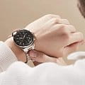 Мужские кварцевые часы Pierre Lannier Cronos 226G131. Часы-хронографХронографФункция позволяет измерять отрезки времени с особой точностью: часы, минуты, секунды. Верным признаком хронографа является наличие на циферблате 3 дополнительных окошек-счётчиков. с секундомеромСекундомерСекундоме́р — прибор, способный измерять интервалы времени с точностью до долей секунды.. Минеральное стеклоМинеральное стеклоМинеральное стекло представляет собой искусственно выращенный минерал кварца. Такое стекло отличается особой устойчивостью к повреждениям и царапинам. Уступает по некоторым качествам сапфировому стеклу. устойчивое к мелким механическим повреждениям. Корпус из нержавеющей стали. БезельБезельВнешний ободок, закрепляющий стекло. В спортивных часах так называется поворотное кольцо с делениями на циферблате, выполняет роль таймера – замеряет отрезки времени на шкале. Неподвижный безель – элемент декора. Однонаправленно вращающийся безель на дайверских часах позволяет фиксировать моменты погружения и выныривания на поверхность. из нержавющей стали с IP-покрытиемIP-покрытиеМетод ионного напыления. Демонстрирует повышенную устойчивость к истиранию, окислению и химическим веществам. Под воздействием высокого давления и температуры около 1500°C молекулы металла надёжно соединяются с частицами корпуса часов.. Центральные часовая и минутная стрелки, секундная стрелка вынесена на малый циферблат. Окошко даты между 4 и 5 часам. Стрелки с люминесцентным покрытиемЛюминесцентное покрытиеПозволяет считывать показания времени в темноте. Производители наносят на стрелки, часовые индексы, безель или поверхность циферблата светонакопительный состав, дающий холодное свечение.. Водостойкость: 100 метров, позволит плавать, нырять и заниматься другими водными видами спорта. Стальной браслет с раскладной застёжкойРаскладная застёжкаТакой тип застёжки используется только на браслетах из металла. Она никогда не раскрывается полностью, происходит разделение на 2 и более частей. Раскладывающая застёжка снизит вероятность потери часов к минимуму..