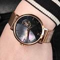 Браслет «миланская сетка» из стали с IP-покрытием подчёркивает утончённый, плотно облегающий дизайн. Он закреплён удобным раскладным замкомРаскладной замокДанный вариант застежки используется только на часах с металлическим браслетом. Отличительная особенность такого крепления в том, что длина браслета становится универсальной и вы можете самостоятельно отрегулировать нужный вам размер – застежка просто двигается по браслету часов.— надёжно и изящно.