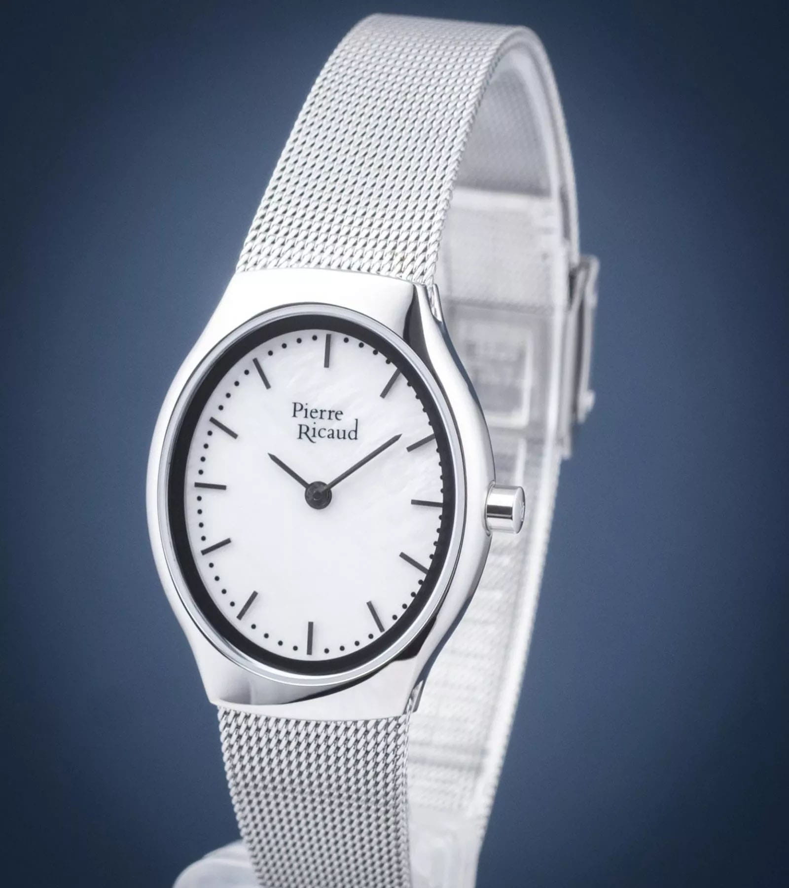Женские немецкие часы с минеральным стекломМинеральное стеклоМинеральное стекло представляет собой искусственно выращенный минерал кварца. Такое стекло отличается особой устойчивостью к повреждениям и царапинам. Уступает по некоторым качествам сапфировому стеклу. Pierre Ricaud P22049.511FQ, кварцевый механизм с высокой точностью. Класс водозащиты: 30 метров, позволит защитить корпус от случайных брызг или капель дождя. Корпус часов изготовлен из стали. Стальной браслет на раскладной застёжкеРаскладная застёжкаТакой тип застёжки используется только на браслетах из металла. Она никогда не раскрывается полностью, происходит разделение на 2 и более частей. Раскладывающая застёжка снизит вероятность потери часов к минимуму..