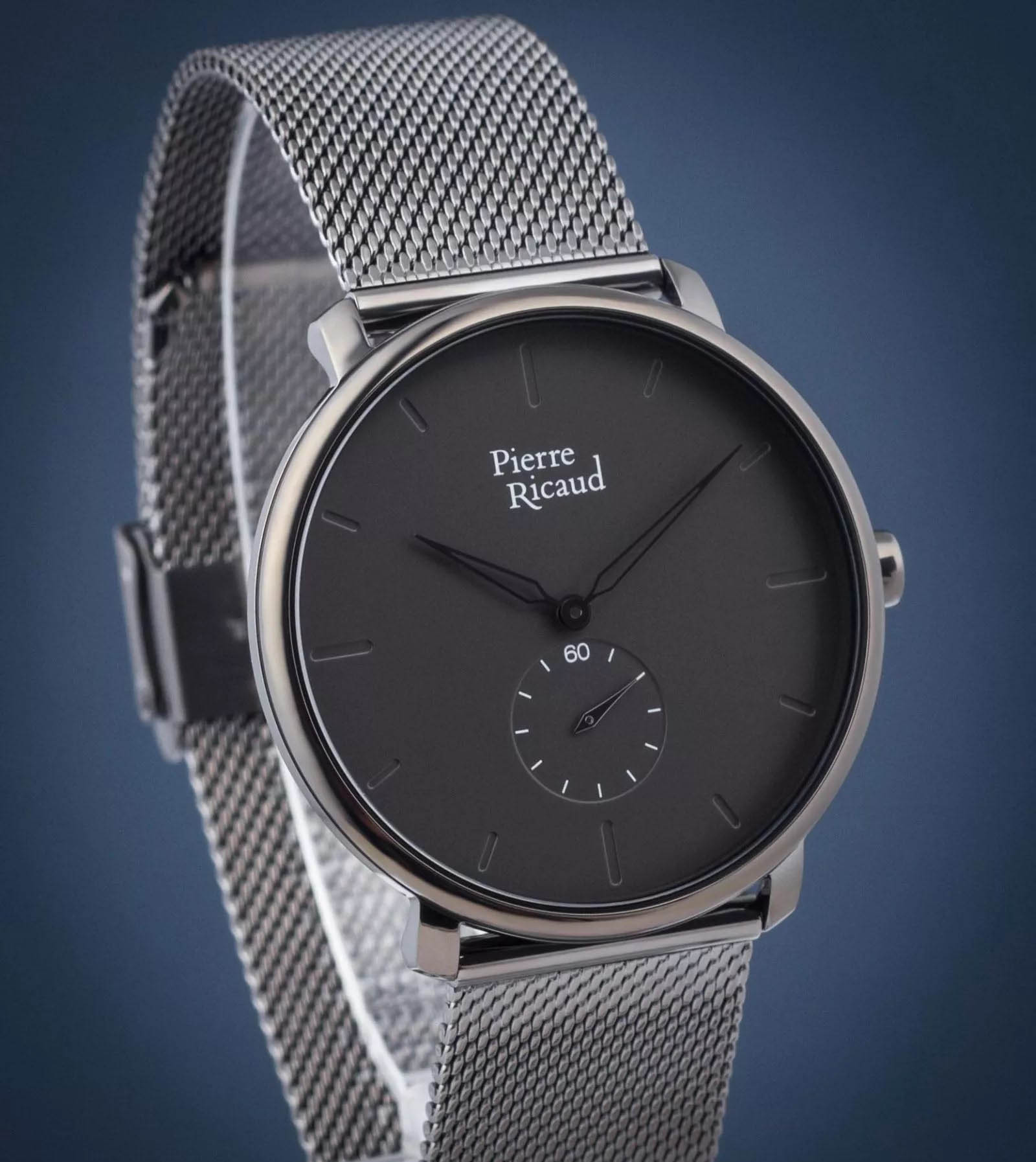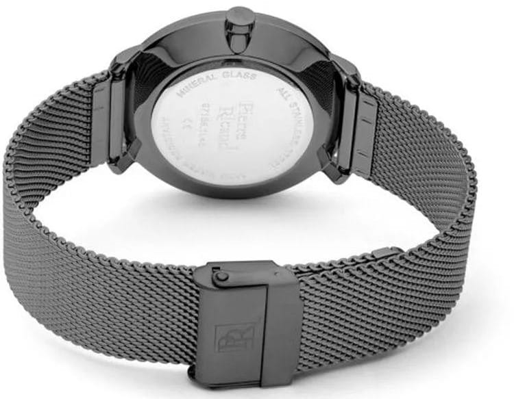 Мужские часы с минеральным стекломМинеральное стеклоМинеральное стекло представляет собой искусственно выращенный минерал кварца. Такое стекло отличается особой устойчивостью к повреждениям и царапинам. Уступает по некоторым качествам сапфировому стеклу. Pierre Ricaud P97168.S116Q, кварцевый механизм с высокой точностью. Класс водозащиты: 30 метров, позволит защитить корпус от случайных брызг или капель дождя. Корпус часов изготовлен из стали с IP-покрытиемIP-покрытиеМетод ионного напыления. Демонстрирует повышенную устойчивость к истиранию, окислению и химическим веществам. Под воздействием высокого давления и температуры около 1500°C молекулы металла надёжно соединяются с частицами корпуса часов.. Стальной браслет на раскладной застёжкеРаскладная застёжкаТакой тип застёжки используется только на браслетах из металла. Она никогда не раскрывается полностью, происходит разделение на 2 и более частей. Раскладывающая застёжка снизит вероятность потери часов к минимуму. с IP-покрытиемIP-покрытиеМетод ионного напыления. Демонстрирует повышенную устойчивость к истиранию, окислению и химическим веществам. Под воздействием высокого давления и температуры около 1500°C молекулы металла надёжно соединяются с частицами корпуса часов.. Вынесенная секундная стрелка.