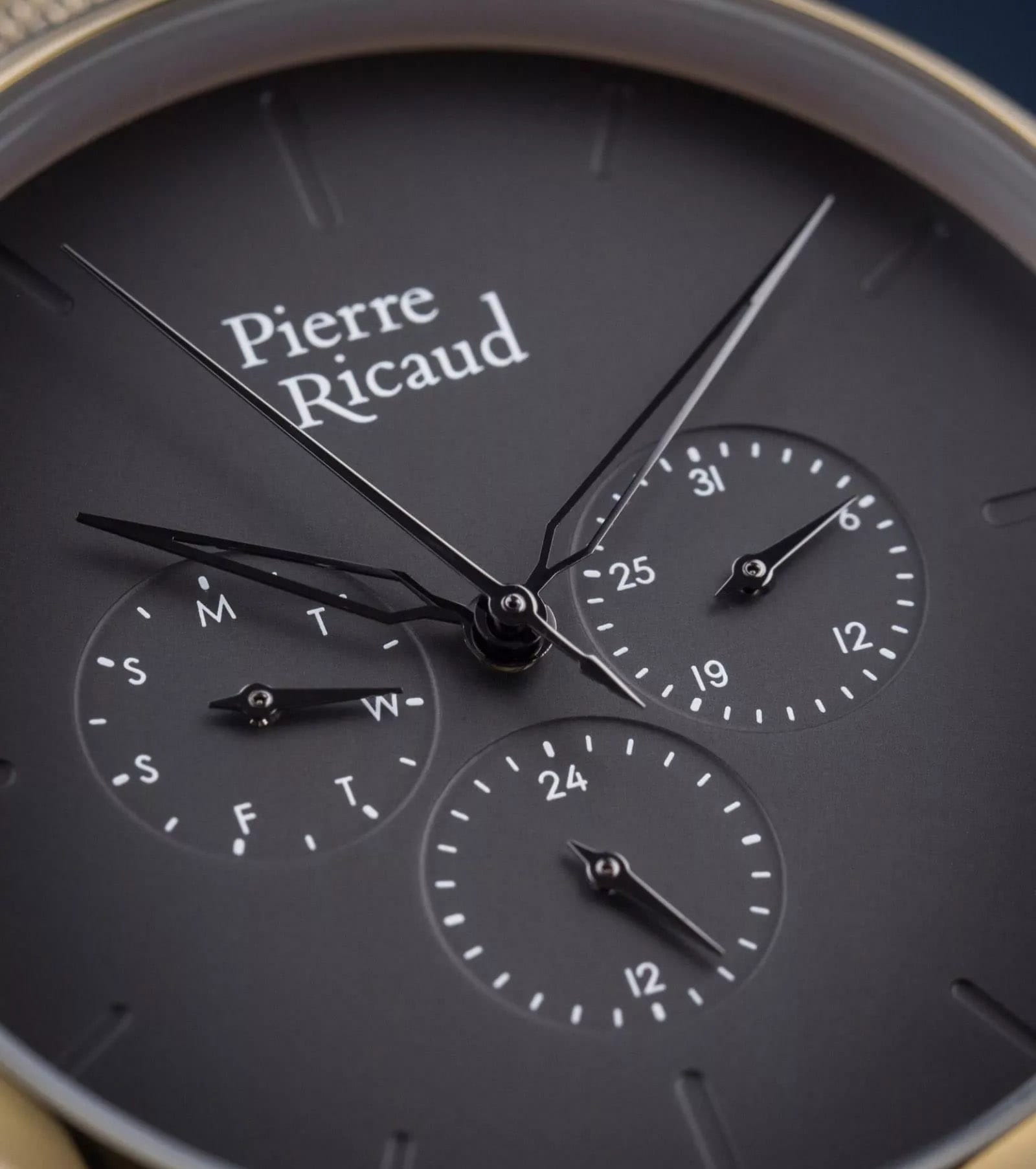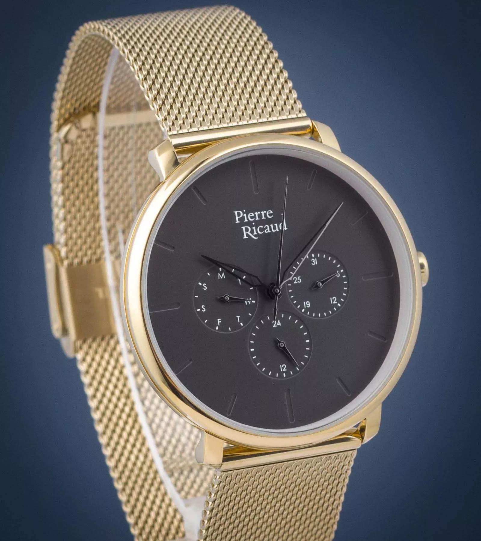 Мужские часы с минеральным стекломМинеральное стеклоМинеральное стекло представляет собой искусственно выращенный минерал кварца. Такое стекло отличается особой устойчивостью к повреждениям и царапинам. Уступает по некоторым качествам сапфировому стеклу. Pierre Ricaud P97169.1116QF, кварцевый механизм с высокой точностью. Класс водозащиты: 50 метров, позволит защитить корпус от случайных брызг или капель дождя. Корпус часов изготовлен из стали с IP-покрытиемIP-покрытиеМетод ионного напыления. Демонстрирует повышенную устойчивость к истиранию, окислению и химическим веществам. Под воздействием высокого давления и температуры около 1500°C молекулы металла надёжно соединяются с частицами корпуса часов.. Стальной браслет на раскладной застёжкеРаскладная застёжкаТакой тип застёжки используется только на браслетах из металла. Она никогда не раскрывается полностью, происходит разделение на 2 и более частей. Раскладывающая застёжка снизит вероятность потери часов к минимуму. с IP-покрытиемIP-покрытиеМетод ионного напыления. Демонстрирует повышенную устойчивость к истиранию, окислению и химическим веществам. Под воздействием высокого давления и температуры около 1500°C молекулы металла надёжно соединяются с частицами корпуса часов..