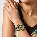 Немецкие кварцевые унисекс часы-хронографХронографФункция позволяет измерять отрезки времени с особой точностью: часы, минуты, секунды. Верным признаком хронографа является наличие на циферблате 3 дополнительных окошек-счётчиков. с секундомеромСекундомерСекундоме́р — прибор, способный измерять интервалы времени с точностью до долей секунды. Plein Sport Hurricane PSDBA0523, кварцевый механизм с высокой точностью. Класс водозащиты: 50 метров, позволит защитить корпус от случайных брызг или капель дождя. Корпус и безельБезельВнешний ободок, закрепляющий стекло. В спортивных часах так называется поворотное кольцо с делениями на циферблате, выполняет роль таймера – замеряет отрезки времени на шкале. Неподвижный безель – элемент декора. Однонаправленно вращающийся безель на дайверских часах позволяет фиксировать моменты погружения и выныривания на поверхность. выполнены из стали с IP-покрытиемIP-покрытиеМетод ионного напыления. Демонстрирует повышенную устойчивость к истиранию, окислению и химическим веществам. Под воздействием высокого давления и температуры около 1500°C молекулы металла надёжно соединяются с частицами корпуса часов.. Стрелки и метки с люминесцентным покрытиемЛюминесцентное покрытиеПозволяет считывать показания времени в темноте. Производители наносят на стрелки, часовые индексы, безель или поверхность циферблата светонакопительный состав, дающий холодное свечение.. Браслет из стали и силикона на стандартной застежке. Минеральное стеклоМинеральное стеклоМинеральное стекло представляет собой искусственно выращенный минерал кварца. Такое стекло отличается особой устойчивостью к повреждениям и царапинам. Уступает по некоторым качествам сапфировому стеклу. устойчивое к мелким механическим повреждениям. Окошко даты находится в положении между 4 и 5 часов.