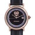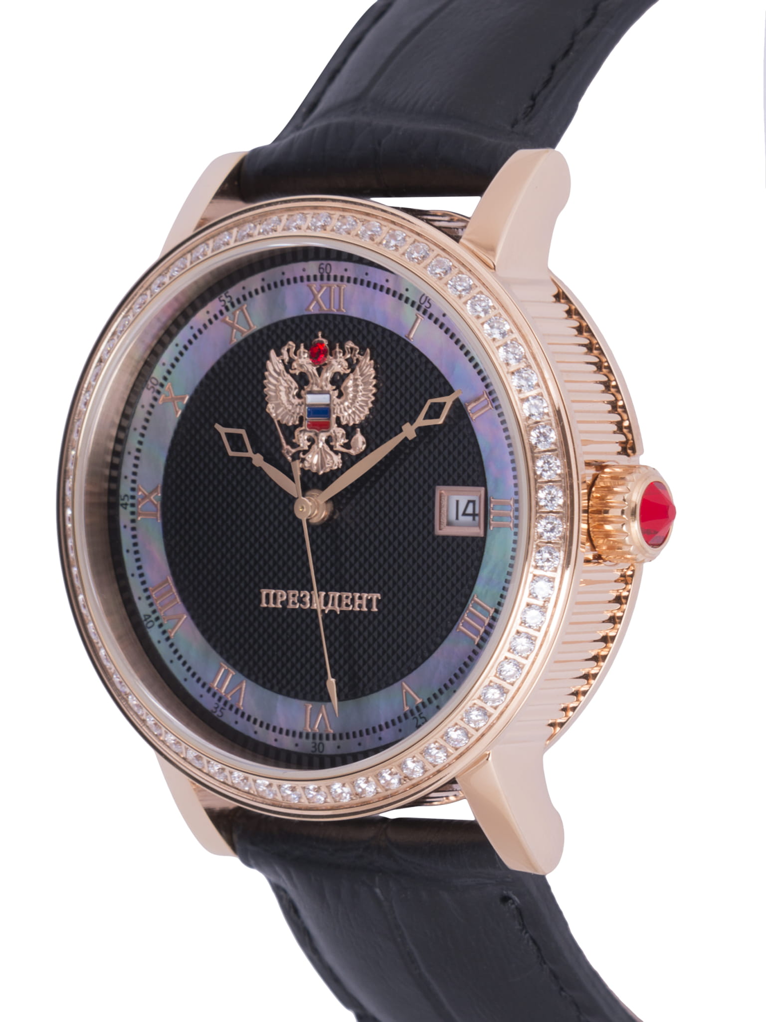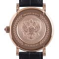 Часы «Президент» модели 3909420 — это элегантные мужские механические наручные часы с автоподзаводом, сочетающие классический дизайн и высокое качество исполнения. Механизм: японский механизм Miyota 8215 с автоподзаводом, обеспечивающий точность и надёжность. Функции: часы, минуты, секунды и дата. Корпус: из нержавеющей стали с PVD-покрытиемPVDУльтратонкое покрытие наносится в технике вакуумного напыления, сочетает в себе нитрид титана особой прочности со слоем золота или оксида хрома. Несёт в себе декоративную или защитную функцию. цвета розового золота, диаметром 38,4 мм и толщиной 12 мм. Циферблат: светлый с перламутровыми вставками, украшен кристаллами Swarovski и изображением государственного герба России. Стекло: сапфировоеСапфировое стеклоПрочный и надёжный материал из кристалла сапфира синтетического происхождения, характеризующийся особой твёрдостью и устойчивостью к царапинам и повреждениям., устойчивое к царапинам. Водонепроницаемость: 3 ATM (30 метров), защищает от случайных брызг и дождя. Ремешок: кожаный, шириной 20 мм, с классической застёжкой. Эти часы станут отличным выбором для ценителей стиля, качества и утончённого дизайна.