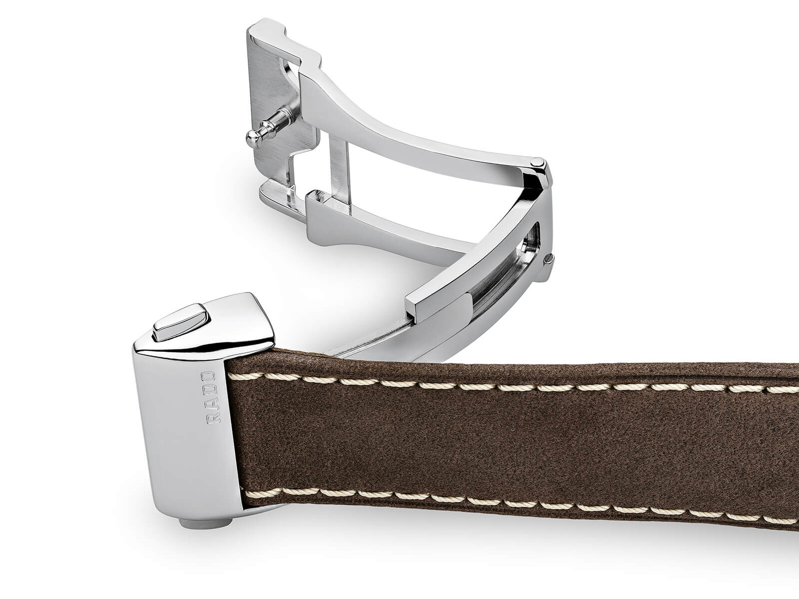 Премиальный хронографХронографФункция позволяет измерять отрезки времени с особой точностью: часы, минуты, секунды. Верным признаком хронографа является наличие на циферблате 3 дополнительных окошек-счётчиков. на классическом коричневом ремешке из натуральной кожи позволит поддерживать правильный имидж. Это лучший вариант для солидного бизнесмена или руководителя компании. Наручные часы с автоподзаводом оснащены швейцарским калибром ETA A05.H21, запас хода сохраняется до 54 часов. Прозрачная задняя крышка корпуса позволяет наблюдать за движением деталей механизма. Корпус из нержавеющей стали 316L. БезельБезельВнешний ободок, закрепляющий стекло. В спортивных часах так называется поворотное кольцо с делениями на циферблате, выполняет роль таймера – замеряет отрезки времени на шкале. Неподвижный безель – элемент декора. Однонаправленно вращающийся безель на дайверских часах позволяет фиксировать моменты погружения и выныривания на поверхность. из высокотехнологичной керамикиВысокотехнологичная керамикаИнновационный запатентованный Rado материал с гладкой или матовой поверхностью. Керамика за счёт кристаллической структуры обладает повышенной устойчивостью от возникновения царапин. Материал способен принимать температуру тела человека, обеспечивая невероятный комфорт при ношении.. Стрелки с люминесцентной подсветкойЛюминесцентное покрытиеПозволяет считывать показания времени в темноте. Производители наносят на стрелки, часовые индексы, безель или поверхность циферблата светонакопительный состав, дающий холодное свечение.. Сапфировое стекло с антибликовой поверхностью. Водостойкость 100 метров. Секундомер, отображение даты. . Диаметр корпуса: 44 мм.