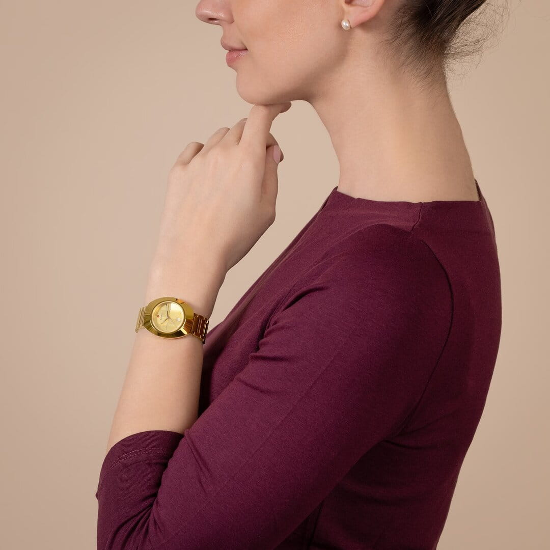 Женские механические часы с автоподзаводом Rado из коллекции Diastar Original — это элегантный аксессуар с классическим дизайном. Корпус овальной формы, диаметром 30 мм и толщиной 11 мм, выполнен из CeramosCeramosМатериал являет собой инновационное сочетание высокотехнологичной керамики и сплава металла. Он объединяет керамическую устойчивость к царапинам и металлический роскошный блеск. с PVD-покрытиемPVDУльтратонкое покрытие наносится в технике вакуумного напыления, сочетает в себе нитрид титана особой прочности со слоем золота или оксида хрома. Несёт в себе декоративную или защитную функцию. золотого цвета. Неподвижный безельБезельВнешний ободок, закрепляющий стекло. В спортивных часах так называется поворотное кольцо с делениями на циферблате, выполняет роль таймера – замеряет отрезки времени на шкале. Неподвижный безель – элемент декора. Однонаправленно вращающийся безель на дайверских часах позволяет фиксировать моменты погружения и выныривания на поверхность. также изготовлен из Ceramos. Циферблат жёлтого цвета оформлен без индексов, с золотистыми стрелками. Циферблат защищён сапфировым стекломСапфировое стеклоПрочный и надёжный материал из кристалла сапфира синтетического происхождения, характеризующийся особой твёрдостью и устойчивостью к царапинам и повреждениям. с антибликовым покрытиемАнтибликовое покрытиеСлой оксида металла в 0,13-0,3 микрон, благодаря которому стекло часов не бликует и не отражает свет. Антибликовое покрытие уменьшает отражение света в 10 раз, обеспечивая отличную читаемость показателей циферблата. на внутренней стороне. Стрелки с люминесцентным покрытиемЛюминесцентное покрытиеПозволяет считывать показания времени в темноте. Производители наносят на стрелки, часовые индексы, безель или поверхность циферблата светонакопительный состав, дающий холодное свечение. Super-Luminova®, обеспечивающим хорошую читаемость в темноте. Механизм — автоматический калибр R586 с запасом хода 48 часов, частотой 28 800 полуколебаний в час и 25 камнями. Окошко даты расположено в положении 6 часов. Часы оснащены стальным браслетом с застёжкой «бабочка» с кнопкамиЗастёжка "бабочка"Такой вид застёжки дополняется предохранителями, помогающими избежать случайного раскрытия браслета. Обладают изящным исполнением. . Водонепроницаемость 100 м позволяет использовать часы для плавания. Гарантия — 5 лет на механизм, 2 года на изделие. Идеальный выбор для тех, кто ценит стиль, точность и швейцарское качество.