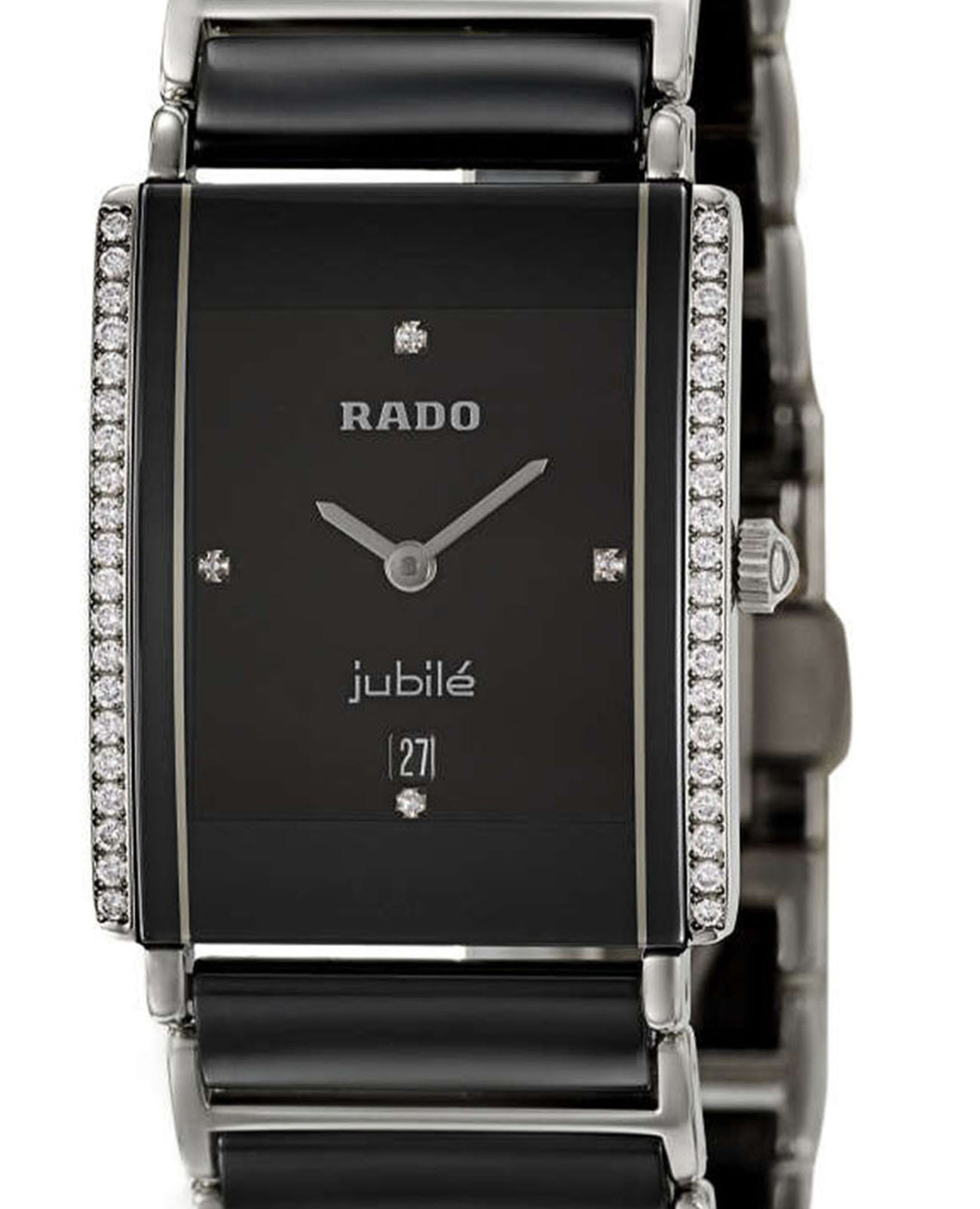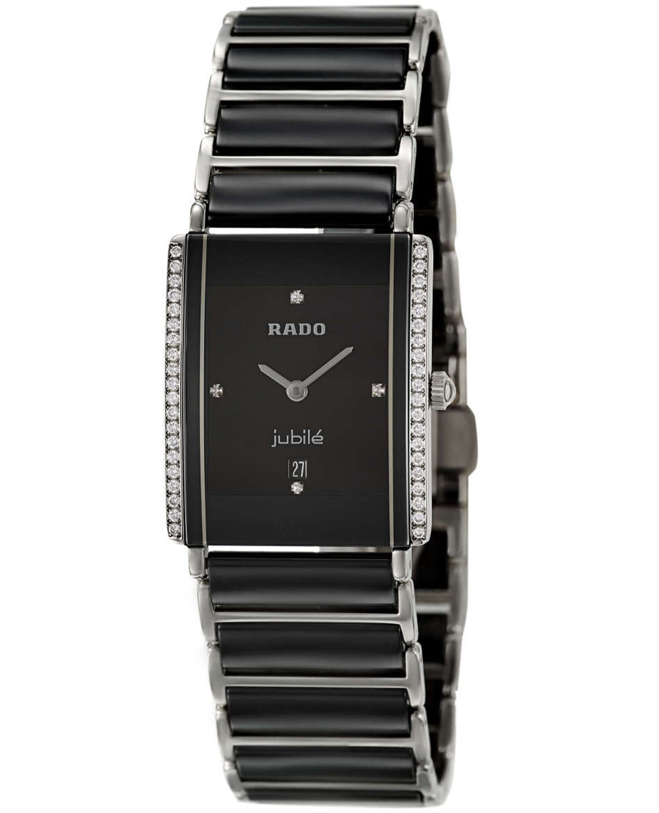 Лаконичный и сдержанный аксессуар точно понравится приверженцам классического стиля, минималистичный циферблат отличается удлинёнными часовыми индексами. Оригинально смотрится сочетание нержавеющей стали 316L и высокотехнологичной керамикиВысокотехнологичная керамикаИнновационный запатентованный Rado материал с гладкой или матовой поверхностью. Керамика за счёт кристаллической структуры обладает повышенной устойчивостью от возникновения царапин. Материал способен принимать температуру тела человека, обеспечивая невероятный комфорт при ношении.. Браслет на раскладной застёжкеРаскладная застёжкаТакой тип застёжки используется только на браслетах из металла. Она никогда не раскрывается полностью, происходит разделение на 2 и более частей. Раскладывающая застёжка снизит вероятность потери часов к минимуму.. Сапфировое стеклоСапфировое стеклоПрочный и надёжный материал из кристалла сапфира синтетического происхождения, характеризующийся особой твёрдостью и устойчивостью к царапинам и повреждениям.. Водозащита 30 метров, позволит защитить корпус от случайных брызг или капель дождя. Циферблат и корпус декорированы бриллиантами. Отображение даты в положении «6 часов».