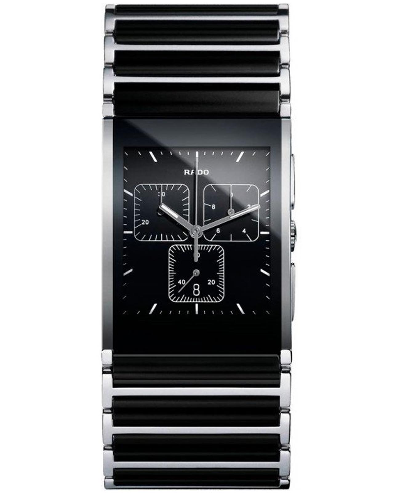 Швейцарские мужские часы-хронографХронографФункция позволяет измерять отрезки времени с особой точностью: часы, минуты, секунды. Верным признаком хронографа является наличие на циферблате 3 дополнительных окошек-счётчиков. Rado Integral R20849152, кварцевый механизм с высокой точностью. Сапфировое стеклоСапфировое стеклоПрочный и надёжный материал из кристалла сапфира синтетического происхождения, характеризующийся особой твёрдостью и устойчивостью к царапинам и повреждениям. устойчивое к появлению царапин, обладающее высокой прозрачностью. Корпус часов изготовлен из нержавеющей стали. Окошко даты находится в положении 6 часов. "}. Стрелки и метки с люминесцентным покрытиемЛюминесцентное покрытиеПозволяет считывать показания времени в темноте. Производители наносят на стрелки, часовые индексы, безель или поверхность циферблата светонакопительный состав, дающий холодное свечение.. Класс водозащиты: 30 метров, позволит защитить корпус от случайных брызг или капель дождя. Браслет из нержавеющей стали и CeramosCeramosМатериал являет собой инновационное сочетание высокотехнологичной керамики и сплава металла. Он объединяет керамическую устойчивость к царапинам и металлический роскошный блеск. на раскладной застёжкеРаскладная застёжкаТакой тип застёжки используется только на браслетах из металла. Она никогда не раскрывается полностью, происходит разделение на 2 и более частей. Раскладывающая застёжка снизит вероятность потери часов к минимуму..