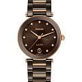 Женские кварцевые часы Rado — это изысканный аксессуар с современным дизайном. Корпус диаметром 31 мм выполнен из высокотехнологичной керамикиВысокотехнологичная керамикаИнновационный запатентованный Rado материал с гладкой или матовой поверхностью. Керамика за счёт кристаллической структуры обладает повышенной устойчивостью от возникновения царапин. Материал способен принимать температуру тела человека, обеспечивая невероятный комфорт при ношении. и нержавеющей стали с PVD-покрытиемPVDУльтратонкое покрытие наносится в технике вакуумного напыления, сочетает в себе нитрид титана особой прочности со слоем золота или оксида хрома. Несёт в себе декоративную или защитную функцию. розового золота. Циферблат коричневого цвета оформлен аналоговым дисплеем. Циферблат защищён выпуклым сапфировым стекломСапфировое стеклоПрочный и надёжный материал из кристалла сапфира синтетического происхождения, характеризующийся особой твёрдостью и устойчивостью к царапинам и повреждениям.. Окошко даты расположено в положении 3 часов. Механизм — кварцевый. Часы оснащены браслетом из комбинации керамики и стали с PVD-покрытиемPVDУльтратонкое покрытие наносится в технике вакуумного напыления, сочетает в себе нитрид титана особой прочности со слоем золота или оксида хрома. Несёт в себе декоративную или защитную функцию. и застёжкой «бабочка» с кнопкамиЗастёжка "бабочка"Такой вид застёжки дополняется предохранителями, помогающими избежать случайного раскрытия браслета. Обладают изящным исполнением. . Водонепроницаемость 50 м позволяет использовать часы в повседневных условиях. Гарантия — 5 лет на механизм, 2 года на изделие. Идеальный выбор для тех, кто ценит стиль, качество и универсальность.