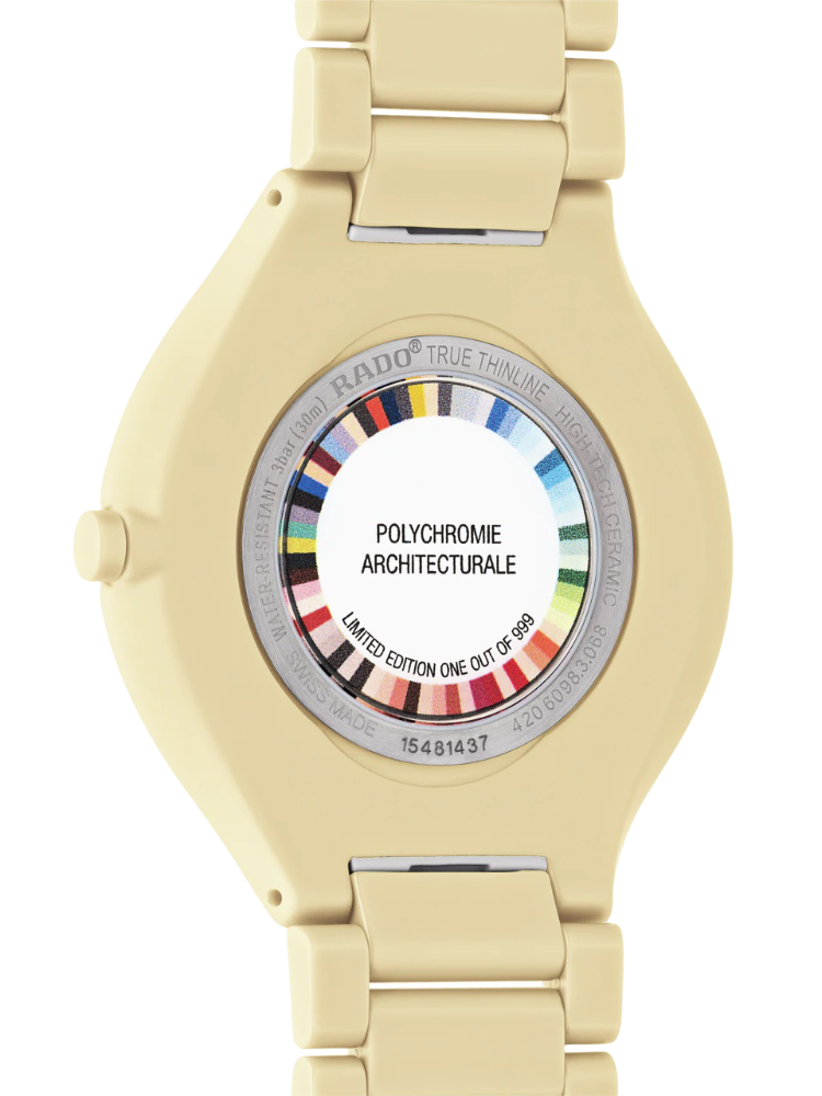 Женские швейцарские часы из лимитированной серии 999 экземпляров Rado True Thinline Le Corbusier R27090602, кварцевый механизм с высокой точностью. Сапфировое стекло устойчивое к появлению царапин, обладающее высокой прозрачностью. Класс водозащиты: 30 метров, позволит защитить корпус от случайных брызг или капель дождя. Корпус часов изготовлен из керамики, цвета.