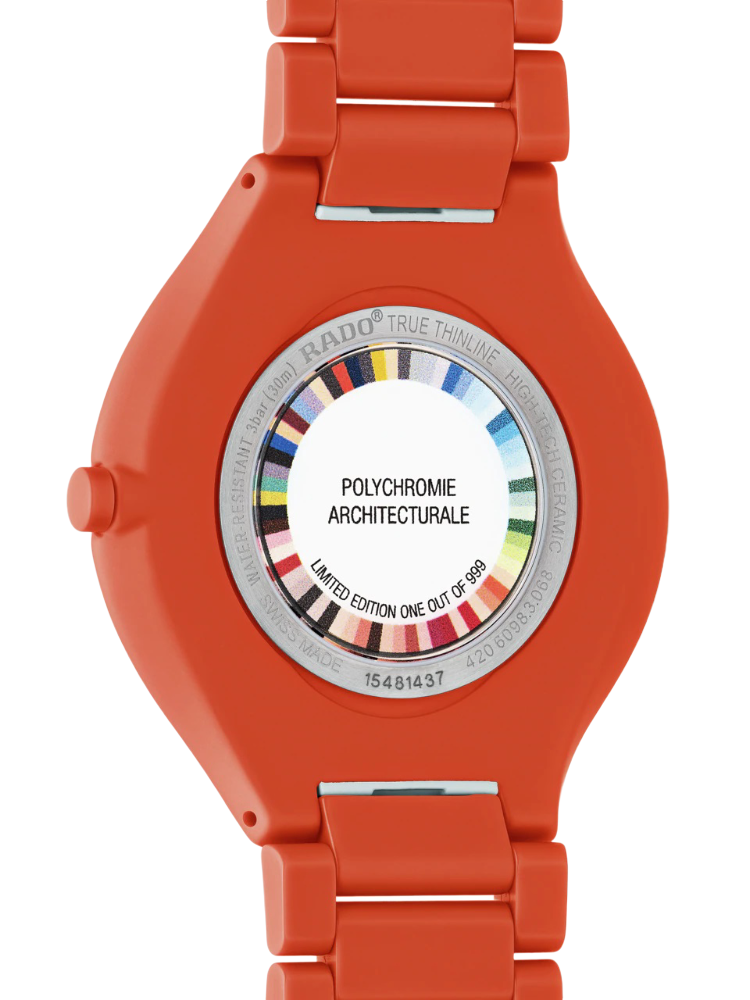 Швейцарские часы из лимитированной серии 999 экземпляров Rado True Thinline Le Corbusier R27095652 , кварцевый механизм с высокой точностью. Сапфировое стекло устойчивое к появлению царапин, обладающее высокой прозрачностью. Класс водозащиты: 30 метров, позволит защитить корпус от случайных брызг или капель дождя. Корпус часов изготовлен из керамики, цвета.