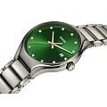 Мужские кварцевые часы Rado True — это изысканный аксессуар с современным дизайном и высокотехнологичными материалами. Корпус диаметром 40 мм выполнен из цельного блока высокотехнологичной плазменной керамикиВысокотехнологичная плазменная керамикаИнновационный материал, технология запатентована. Выплавление керамики осуществляется в печи при 20 000 °C, белоснежный материал под воздействием ультравысокой температуры приобретает уникальный блеск, присущий металлам., что обеспечивает лёгкость, прочность и устойчивость к царапинам. Циферблат зелёного цвета украшен 12 бриллиантами и защищён выпуклым сапфировым стекломСапфировое стеклоПрочный и надёжный материал из кристалла сапфира синтетического происхождения, характеризующийся особой твёрдостью и устойчивостью к царапинам и повреждениям.. Стрелки розового золота с белым покрытием и метки снабжены люминесцентным покрытиемЛюминесцентное покрытиеПозволяет считывать показания времени в темноте. Производители наносят на стрелки, часовые индексы, безель или поверхность циферблата светонакопительный состав, дающий холодное свечение. Super-Luminova®, обеспечивающим отличную читаемость в темноте. Механизм — кварцевый. Часы оснащены браслетом из высокотехнологичной плазменной керамикиВысокотехнологичная плазменная керамикаИнновационный материал, технология запатентована. Выплавление керамики осуществляется в печи при 20 000 °C, белоснежный материал под воздействием ультравысокой температуры приобретает уникальный блеск, присущий металлам. и титана с застёжкой «бабочка» с кнопкамиЗастёжка "бабочка"Такой вид застёжки дополняется предохранителями, помогающими избежать случайного раскрытия браслета. Обладают изящным исполнением. из титана. Водонепроницаемость 50 м позволяет использовать часы в повседневных условиях. Идеальный выбор для тех, кто ценит инновации, стиль и швейцарское качество.