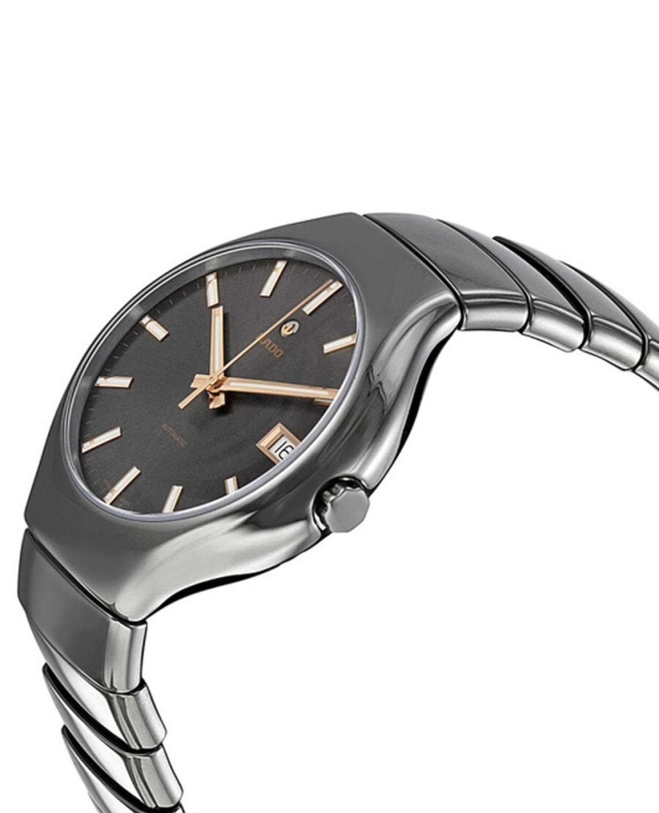 Мужские механические швейцарские часы с автоподзаводом Rado True R27351102. Сапфировое стеклоСапфировое стеклоПрочный и надёжный материал из кристалла сапфира синтетического происхождения, характеризующийся особой твёрдостью и устойчивостью к царапинам и повреждениям. устойчивое к мелким механическим повреждениям. Корпус часов изготовлен из высокотехнологичной керамикиВысокотехнологичная керамикаИнновационный запатентованный Rado материал с гладкой или матовой поверхностью. Керамика за счёт кристаллической структуры обладает повышенной устойчивостью от возникновения царапин. Материал способен принимать температуру тела человека, обеспечивая невероятный комфорт при ношении.. Окошко даты находится в положении 3 часа. Стрелки с люминесцентным покрытиемЛюминесцентное покрытиеПозволяет считывать показания времени в темноте. Производители наносят на стрелки, часовые индексы, безель или поверхность циферблата светонакопительный состав, дающий холодное свечение.. Браслет из высокотехнологичной керамикиВысокотехнологичная керамикаИнновационный запатентованный Rado материал с гладкой или матовой поверхностью. Керамика за счёт кристаллической структуры обладает повышенной устойчивостью от возникновения царапин. Материал способен принимать температуру тела человека, обеспечивая невероятный комфорт при ношении. на застёжке-бабочке с кнопкамиЗастёжка "бабочка"Такой вид застёжки дополняется предохранителями, помогающими избежать случайного раскрытия браслета. Обладают изящным исполнением. .