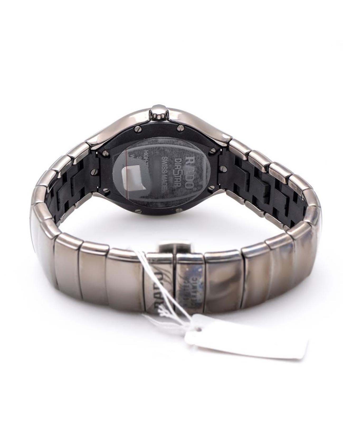 Мужские механические швейцарские часы с автоподзаводом Rado True R27351702. Сапфировое стеклоСапфировое стеклоПрочный и надёжный материал из кристалла сапфира синтетического происхождения, характеризующийся особой твёрдостью и устойчивостью к царапинам и повреждениям. устойчивое к мелким механическим повреждениям. Корпус часов изготовлен из высокотехнологичной керамикиВысокотехнологичная керамикаИнновационный запатентованный Rado материал с гладкой или матовой поверхностью. Керамика за счёт кристаллической структуры обладает повышенной устойчивостью от возникновения царапин. Материал способен принимать температуру тела человека, обеспечивая невероятный комфорт при ношении.. Цифрблат украшен бриллиантами. Класс водозащиты: 30 метров, позволит защитить корпус от случайных брызг или капель дождя. Браслет из высокотехнологичной керамикиВысокотехнологичная керамикаИнновационный запатентованный Rado материал с гладкой или матовой поверхностью. Керамика за счёт кристаллической структуры обладает повышенной устойчивостью от возникновения царапин. Материал способен принимать температуру тела человека, обеспечивая невероятный комфорт при ношении. на застёжке-бабочке с кнопкамиЗастёжка "бабочка"Такой вид застёжки дополняется предохранителями, помогающими избежать случайного раскрытия браслета. Обладают изящным исполнением. .