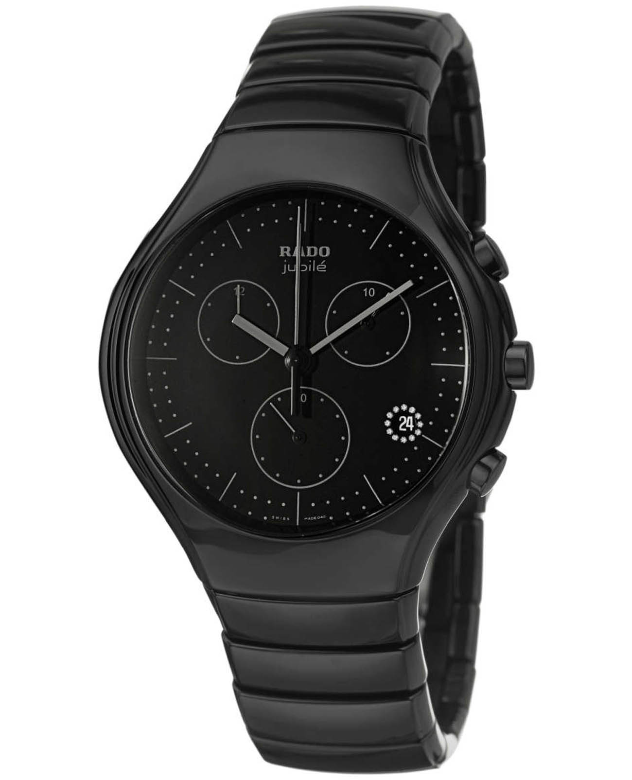 Мужские швейцарские часы-хронографХронографФункция позволяет измерять отрезки времени с особой точностью: часы, минуты, секунды. Верным признаком хронографа является наличие на циферблате 3 дополнительных окошек-счётчиков. Rado True R27814402. Сапфировое стеклоСапфировое стеклоПрочный и надёжный материал из кристалла сапфира синтетического происхождения, характеризующийся особой твёрдостью и устойчивостью к царапинам и повреждениям. устойчивое к мелким механическим повреждениям. Корпус часов изготовлен из высокотехнологичной керамикиВысокотехнологичная керамикаИнновационный запатентованный Rado материал с гладкой или матовой поверхностью. Керамика за счёт кристаллической структуры обладает повышенной устойчивостью от возникновения царапин. Материал способен принимать температуру тела человека, обеспечивая невероятный комфорт при ношении.. Класс водозащиты: 30 метров, позволит защитить корпус от случайных брызг или капель дождя. Браслет из высокотехнологичной керамикиВысокотехнологичная керамикаИнновационный запатентованный Rado материал с гладкой или матовой поверхностью. Керамика за счёт кристаллической структуры обладает повышенной устойчивостью от возникновения царапин. Материал способен принимать температуру тела человека, обеспечивая невероятный комфорт при ношении. на застёжке-бабочке с кнопкамиЗастёжка "бабочка"Такой вид застёжки дополняется предохранителями, помогающими избежать случайного раскрытия браслета. Обладают изящным исполнением. .