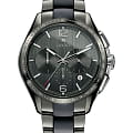 Премиальная модель отличается стильным дизайном, соединяющим классическую лаконичность и спортивные детали. Серый циферблат с элегантным продольным узором дополнен счётчиками хронографаХронографФункция позволяет измерять отрезки времени с особой точностью: часы, минуты, секунды. Верным признаком хронографа является наличие на циферблате 3 дополнительных окошек-счётчиков. и окошком даты. Уникальность аксессуара заключается в используемых материалах: корпус изготовлен из хирургической стали 316L и плазменной керамикиВысокотехнологичная плазменная керамикаИнновационный материал, технология запатентована. Выплавление керамики осуществляется в печи при 20 000 °C, белоснежный материал под воздействием ультравысокой температуры приобретает уникальный блеск, присущий металлам., браслет сделан из плазменной керамики и материала CeramosCeramosМатериал являет собой инновационное сочетание высокотехнологичной керамики и сплава металла. Он объединяет керамическую устойчивость к царапинам и металлический роскошный блеск. . В основе - механизм ETA 2894-2 с запасом хода 45 часов. Прозрачная задняя крышка. Сапфировое стекло с покрытием «антиблик». Водонепроницаемость до 10 бар. . Секундомер, тахиметрТахиметрРазмеченная шкала, располагается на ободке или безеле часов. Тахиметр позволяет рассчитать скорость на определённом участке пути, расстояние измеряется в километрах или милях.. Диаметр корпуса: 45 мм.