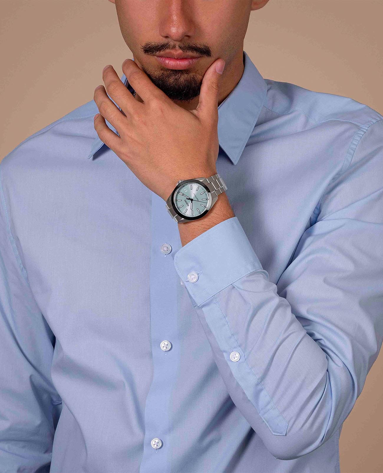 Мужские кварцевые часы Rado HyperChrome — это современное воплощение точности и мастерства материалов. Корпус диаметром 41,5 мм и толщиной 11,7 мм выполнен из полированной и матовой нержавеющей стали. БезельБезельВнешний ободок, закрепляющий стекло. В спортивных часах так называется поворотное кольцо с делениями на циферблате, выполняет роль таймера – замеряет отрезки времени на шкале. Неподвижный безель – элемент декора. Однонаправленно вращающийся безель на дайверских часах позволяет фиксировать моменты погружения и выныривания на поверхность. изготовлен из высокотехнологичной керамикиВысокотехнологичная керамикаИнновационный запатентованный Rado материал с гладкой или матовой поверхностью. Керамика за счёт кристаллической структуры обладает повышенной устойчивостью от возникновения царапин. Материал способен принимать температуру тела человека, обеспечивая невероятный комфорт при ношении. чёрного цвета, придающей часам прочность и изысканность. Циферблат бирюзового цвета с лакированным покрытием оформлен индексами и стрелками с люминесцентным покрытиемЛюминесцентное покрытиеПозволяет считывать показания времени в темноте. Производители наносят на стрелки, часовые индексы, безель или поверхность циферблата светонакопительный состав, дающий холодное свечение. Super-Luminova®. Особенность подсветки — зелёное свечение метки 12 часов и минутной стрелки, и синее — остальных индексов и часовой стрелки, что обеспечивает интуитивное считывание времени в темноте. Циферблат защищён выпуклым сапфировым стекломСапфировое стеклоПрочный и надёжный материал из кристалла сапфира синтетического происхождения, характеризующийся особой твёрдостью и устойчивостью к царапинам и повреждениям. с антибликовым покрытиемАнтибликовое покрытиеСлой оксида металла в 0,13-0,3 микрон, благодаря которому стекло часов не бликует и не отражает свет. Антибликовое покрытие уменьшает отражение света в 10 раз, обеспечивая отличную читаемость показателей циферблата. на внутренней стороне. Механизм — кварцевый. Окошко даты расположено в положении 3 часов. Часы оснащены трёхрядным стальным браслетом с центральными звеньями и трёхсекционной застёжкой с системой быстрой регулировки. Водонепроницаемость 150 м позволяет использовать часы для плавания и повседневного ношения. Идеальный выбор для тех, кто ценит инновации, точность и смелый дизайн.