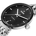 Универсальные механические часы с автоподзаводом Rado из коллекции Florence — это воплощение швейцарской точности и элегантности. Корпус диаметром 39 мм и толщиной 11 мм выполнен из нержавеющей стали. Циферблат чёрного цвета с рельефным узором оформлен накладными индексами и подвижным якорем бренда — символом Rado. Циферблат защищён сапфировым стекломСапфировое стеклоПрочный и надёжный материал из кристалла сапфира синтетического происхождения, характеризующийся особой твёрдостью и устойчивостью к царапинам и повреждениям. с антибликовым покрытиемАнтибликовое покрытиеСлой оксида металла в 0,13-0,3 микрон, благодаря которому стекло часов не бликует и не отражает свет. Антибликовое покрытие уменьшает отражение света в 10 раз, обеспечивая отличную читаемость показателей циферблата., которое одновременно выполняет функцию безеляБезельВнешний ободок, закрепляющий стекло. В спортивных часах так называется поворотное кольцо с делениями на циферблате, выполняет роль таймера – замеряет отрезки времени на шкале. Неподвижный безель – элемент декора. Однонаправленно вращающийся безель на дайверских часах позволяет фиксировать моменты погружения и выныривания на поверхность.. Механизм — автоматический калибр R763 с пружиной Nivachron™Nivachron™Специально разработанный инновационный сплав Nivachron™ повышает устойчивость часов к воздействию магнитных полей., отрегулированный в пяти положениях, с запасом хода 80 часов. Окошко даты расположено в положении 3 часов. Прозрачная задняя крышка с сапфировым стеклом позволяет наблюдать за работой механизма. Завинчивающаяся коронка обеспечивает дополнительную защиту. Часы оснащены стальным браслетом с комбинацией матовых и полированных звеньев и трёхсекционной застёжкой из нержавеющей стали. Водонепроницаемость 50 м позволяет использовать часы в повседневных условиях. Идеальный выбор для тех, кто ценит мастерство, стиль и универсальность.