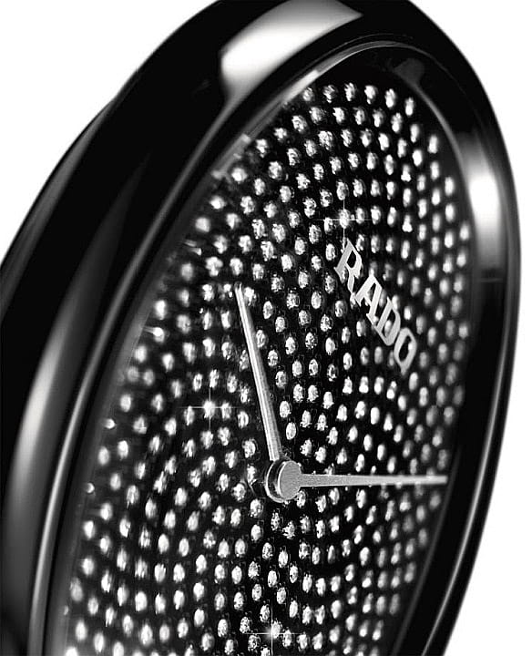 Женские керамические швейцарские часы с бриллиантами Rado Esenza R53094722, кварцевый механизм с высокой точностью. Сапфировое стеклоСапфировое стеклоПрочный и надёжный материал из кристалла сапфира синтетического происхождения, характеризующийся особой твёрдостью и устойчивостью к царапинам и повреждениям. устойчивое к появлению царапин, обладающее высокой прозрачностью. Класс водозащиты: 30 метров, позволит защитить корпус от случайных брызг или капель дождя. Корпус и браслет часов изготовлены из высокотехнологичной керамикиВысокотехнологичная керамикаИнновационный запатентованный Rado материал с гладкой или матовой поверхностью. Керамика за счёт кристаллической структуры обладает повышенной устойчивостью от возникновения царапин. Материал способен принимать температуру тела человека, обеспечивая невероятный комфорт при ношении.. Браслет на раскладной застёжкеРаскладная застёжкаТакой тип застёжки используется только на браслетах из металла. Она никогда не раскрывается полностью, происходит разделение на 2 и более частей. Раскладывающая застёжка снизит вероятность потери часов к минимуму.. Циферблат декорирован бриллиантами .694 карат.