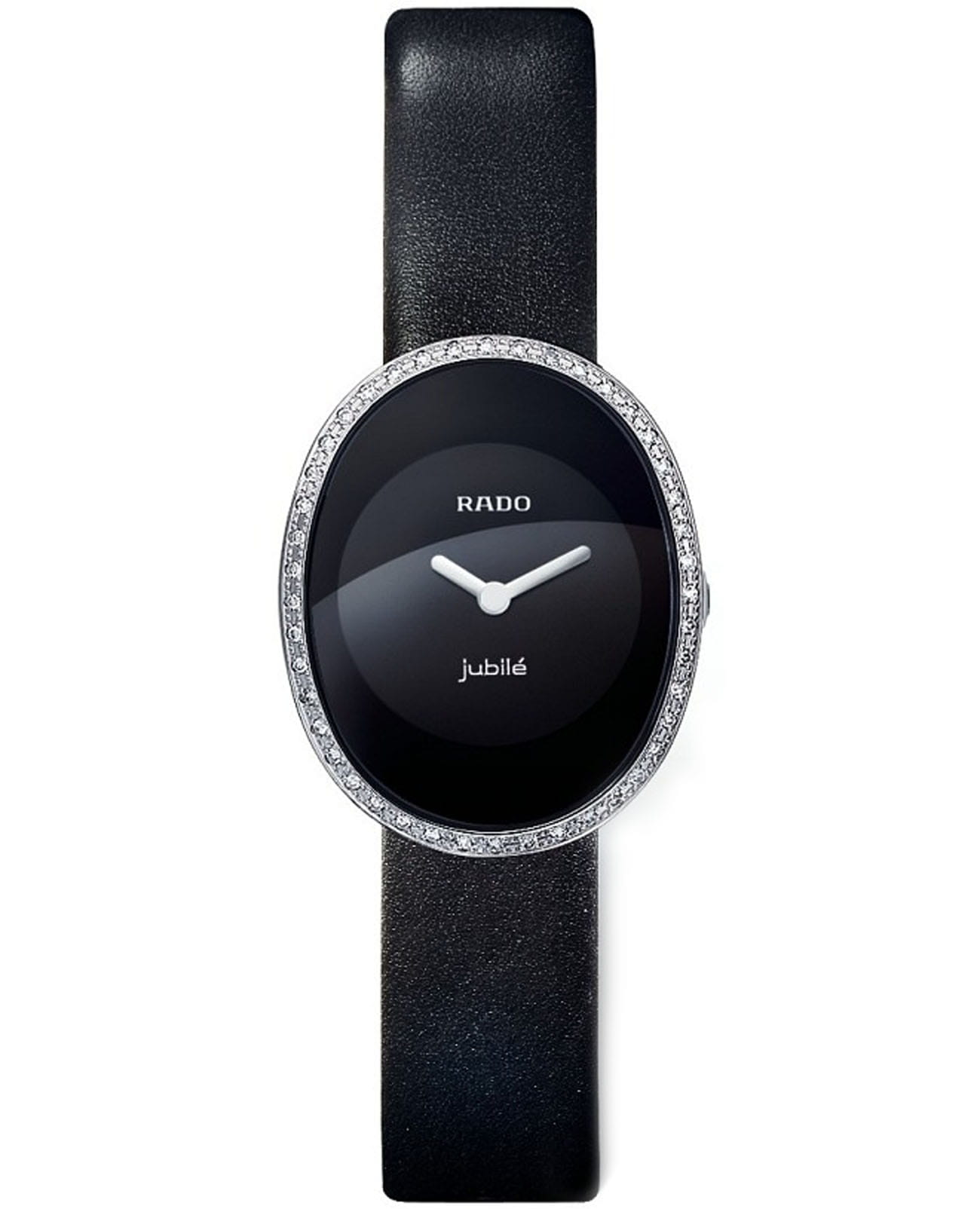 Швейцарские женские Rado Esenza R53763155, кварцевый механизм с высокой точностью. Сапфировое стеклоСапфировое стеклоПрочный и надёжный материал из кристалла сапфира синтетического происхождения, характеризующийся особой твёрдостью и устойчивостью к царапинам и повреждениям. устойчивое к появлению царапин, обладающее высокой прозрачностью. Корпус часов изготовлен из нержавеющей стали. БезельБезельВнешний ободок, закрепляющий стекло. В спортивных часах так называется поворотное кольцо с делениями на циферблате, выполняет роль таймера – замеряет отрезки времени на шкале. Неподвижный безель – элемент декора. Однонаправленно вращающийся безель на дайверских часах позволяет фиксировать моменты погружения и выныривания на поверхность. украшен бриллиантами. Класс водозащиты: 30 метров, позволит защитить корпус от случайных брызг или капель дождя. Кожаный браслет на стандартной застежке.