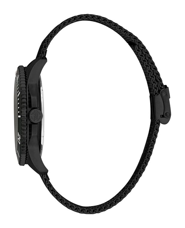 ROBERTO CAVALLI Uomo Sport RC5G013M0075 — стильные итальянские часы сочетающие в себе элегантность и современный функционал. Круглый корпус диаметром 44 мм выполнен из нержавеющей стали с PVD-покрытиемPVDУльтратонкое покрытие наносится в технике вакуумного напыления, сочетает в себе нитрид титана особой прочности со слоем золота или оксида хрома. Несёт в себе декоративную или защитную функцию., толщина корпуса составляет 11 мм, что придает модели выразительный внешний вид и надежную защиту от внешних воздействий. Часы оснащены кварцевым механизмом, также обладают функцией отображения даты, что делает их удобными для ежедневного использования. Минеральное стеклоМинеральное стеклоМинеральное стекло представляет собой искусственно выращенный минерал кварца. Такое стекло отличается особой устойчивостью к повреждениям и царапинам. Уступает по некоторым качествам сапфировому стеклу. защищает часы от царапин. Водозащита 100 метров, позволит плавать, нырять и заниматься другими водными видами спорта. Стальной браслет миланского плетения на раскладной застёжкеРаскладная застёжкаТакой тип застёжки используется только на браслетах из металла. Она никогда не раскрывается полностью, происходит разделение на 2 и более частей. Раскладывающая застёжка снизит вероятность потери часов к минимуму. обеспечивает комфортное ношение. БезельБезельВнешний ободок, закрепляющий стекло. В спортивных часах так называется поворотное кольцо с делениями на циферблате, выполняет роль таймера – замеряет отрезки времени на шкале. Неподвижный безель – элемент декора. Однонаправленно вращающийся безель на дайверских часах позволяет фиксировать моменты погружения и выныривания на поверхность. с PVD-покрытиемPVDУльтратонкое покрытие наносится в технике вакуумного напыления, сочетает в себе нитрид титана особой прочности со слоем золота или оксида хрома. Несёт в себе декоративную или защитную функцию.. Стрелки и метки с люминесцентным покрытиемЛюминесцентное покрытиеПозволяет считывать показания времени в темноте. Производители наносят на стрелки, часовые индексы, безель или поверхность циферблата светонакопительный состав, дающий холодное свечение. обеспечивают отличную читаемость в любое время суток.