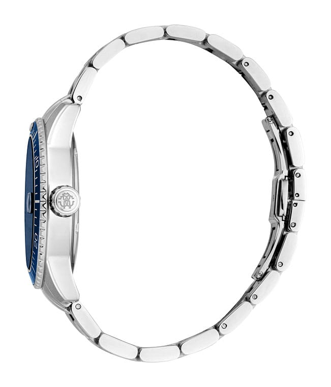 ROBERTO CAVALLI Acquatico RC5G084M0025 — стильные итальянские часы сочетающие в себе элегантность и современный функционал. Круглый корпус диаметром 42 мм выполнен из нержавеющей стали, толщина корпуса составляет 11 мм, что придает модели выразительный внешний вид и надежную защиту от внешних воздействий. Часы оснащены кварцевым механизмом, также обладают функцией отображения даты, что делает их удобными для ежедневного использования. Минеральное стеклоМинеральное стеклоМинеральное стекло представляет собой искусственно выращенный минерал кварца. Такое стекло отличается особой устойчивостью к повреждениям и царапинам. Уступает по некоторым качествам сапфировому стеклу. защищает часы от царапин. Водозащита 100 метров, позволит плавать, нырять и заниматься другими водными видами спорта. Стальной браслет на застёжке-бабочке с кнопкамиЗастёжка "бабочка"Такой вид застёжки дополняется предохранителями, помогающими избежать случайного раскрытия браслета. Обладают изящным исполнением. обеспечивает комфортное ношение. Поворотный безельБезельВнешний ободок, закрепляющий стекло. В спортивных часах так называется поворотное кольцо с делениями на циферблате, выполняет роль таймера – замеряет отрезки времени на шкале. Неподвижный безель – элемент декора. Однонаправленно вращающийся безель на дайверских часах позволяет фиксировать моменты погружения и выныривания на поверхность. с PVD-покрытиемPVDУльтратонкое покрытие наносится в технике вакуумного напыления, сочетает в себе нитрид титана особой прочности со слоем золота или оксида хрома. Несёт в себе декоративную или защитную функцию.. Стрелки и метки с люминесцентным покрытиемЛюминесцентное покрытиеПозволяет считывать показания времени в темноте. Производители наносят на стрелки, часовые индексы, безель или поверхность циферблата светонакопительный состав, дающий холодное свечение. обеспечивают отличную читаемость в любое время суток.