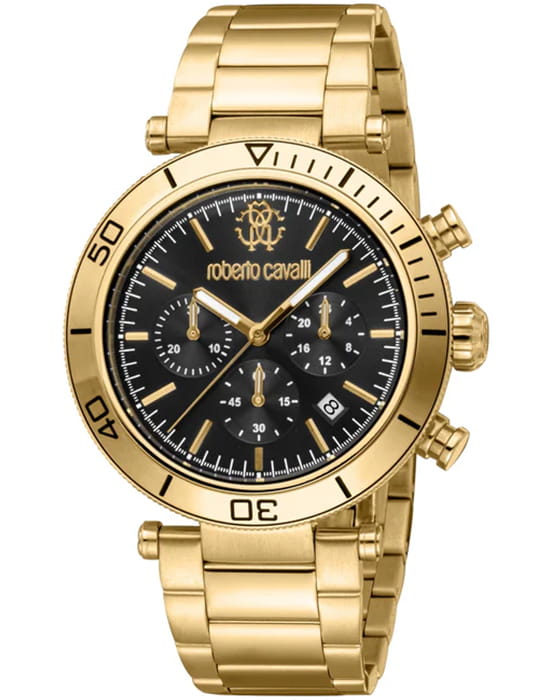 Roberto Cavalli Ritmo RC5G128M0065 — мужская кварцевая модель с ярко выраженным спортивным стилем и практичным функционалом, сочетающая строгий дизайн и надёжность. Корпус с PVD-покрытиемPVDУльтратонкое покрытие наносится в технике вакуумного напыления, сочетает в себе нитрид титана особой прочности со слоем золота или оксида хрома. Несёт в себе декоративную или защитную функцию. диаметром 43 мм и толщиной 12 мм выполнен из нержавеющей стали, защищён прочным минеральным стекломМинеральное стеклоМинеральное стекло представляет собой искусственно выращенный минерал кварца. Такое стекло отличается особой устойчивостью к повреждениям и царапинам. Уступает по некоторым качествам сапфировому стеклу., устойчивым к повседневным повреждениям и сохраняющим хорошую читаемость циферблата. Водозащита 100 м делает часы надёжным спутником во время плавания и активного отдыха. Функциональность поддерживается индикаторами хронографаХронографФункция позволяет измерять отрезки времени с особой точностью: часы, минуты, секунды. Верным признаком хронографа является наличие на циферблате 3 дополнительных окошек-счётчиков. и даты, которые органично вписаны в оформление циферблата. Стальной браслет с PVD-покрытиемPVDУльтратонкое покрытие наносится в технике вакуумного напыления, сочетает в себе нитрид титана особой прочности со слоем золота или оксида хрома. Несёт в себе декоративную или защитную функцию. на застёжке-бабочке с кнопкамиЗастёжка "бабочка"Такой вид застёжки дополняется предохранителями, помогающими избежать случайного раскрытия браслета. Обладают изящным исполнением. обеспечивает комфортную посадку и долговечность, а также гармонично завершает образ модели, которая одинаково хорошо подойдёт как для динамичного повседневного ритма, так и для более строгих ситуаций.