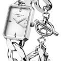 Женские кварцевые часы. Центральные часовая, минутная и секундная стрелки. Серебристый циферблат. Восьмиугольный корпус выполнен из полированной нержавеющей стали серебристого цвета. Размер корпуса составляет 19.5 х 24 мм. Стальной браслет с ювелирной застежкой. Прочное минеральное стеклоМинеральное стеклоМинеральное стекло представляет собой искусственно выращенный минерал кварца. Такое стекло отличается особой устойчивостью к повреждениям и царапинам. Уступает по некоторым качествам сапфировому стеклу. устойчивое к мелким механическим повреждениям. Водостойкость WR 30 (брызги).